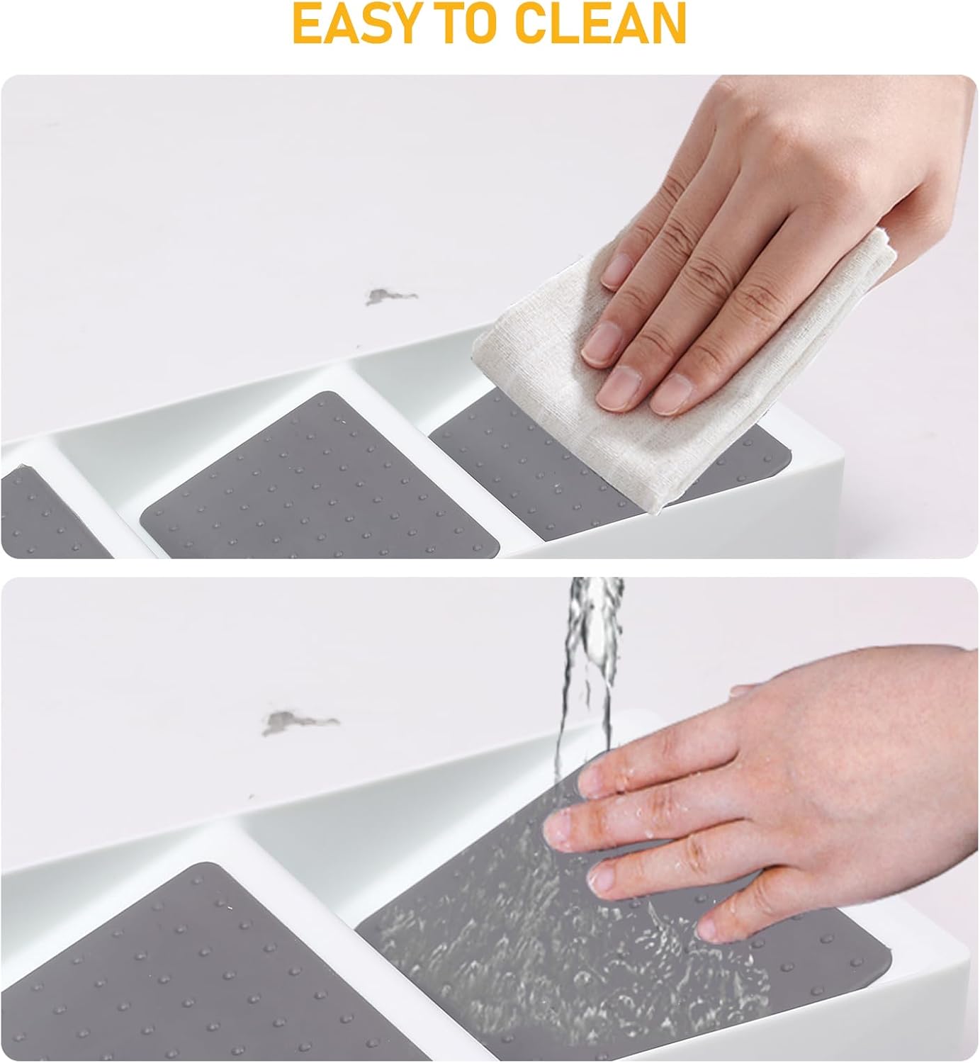 - SILICONE NON-SLIP DOTS SURFACE: The surface of the spice organizer for drawer is a polka dot non-slip silicone surface that holds the spices in place and prevents the items from moving when pulling the drawer and you don't have to worry about the spices pouring out
