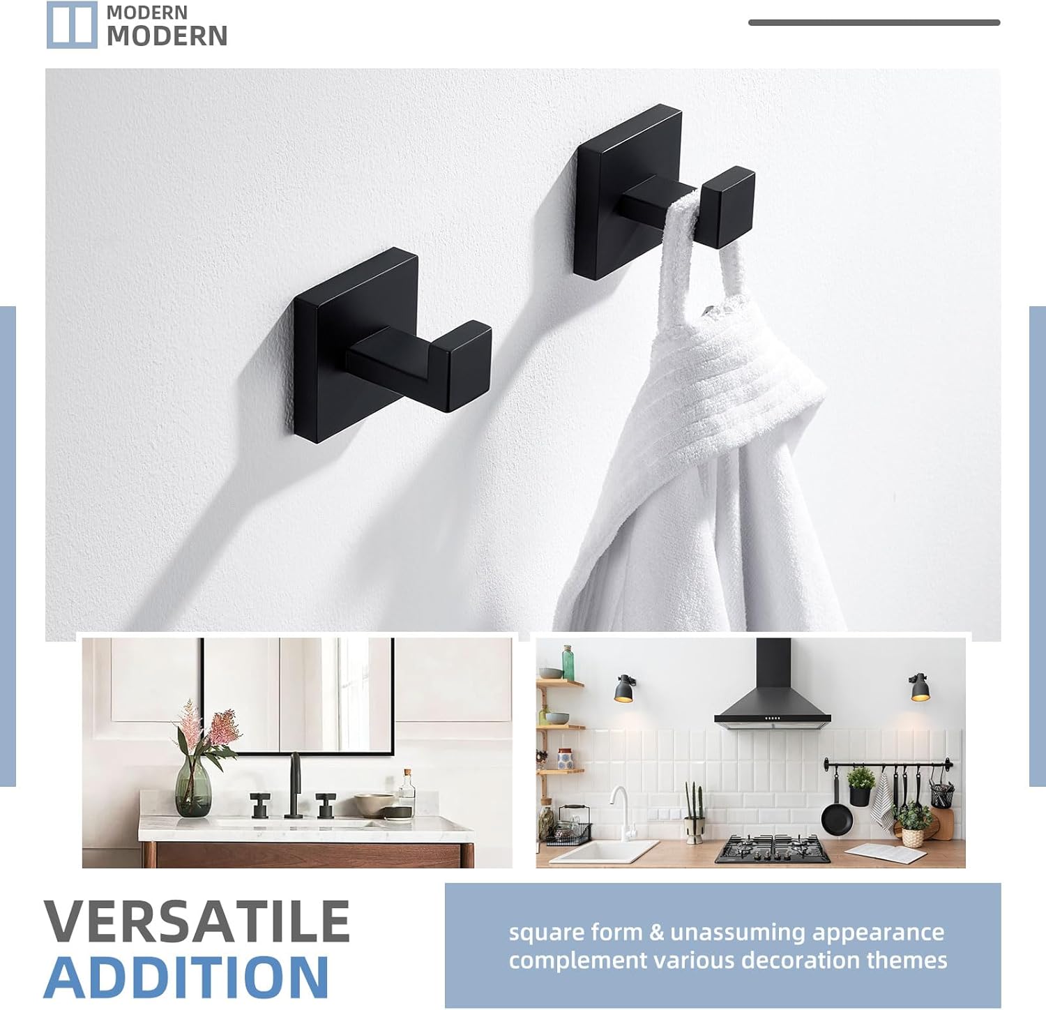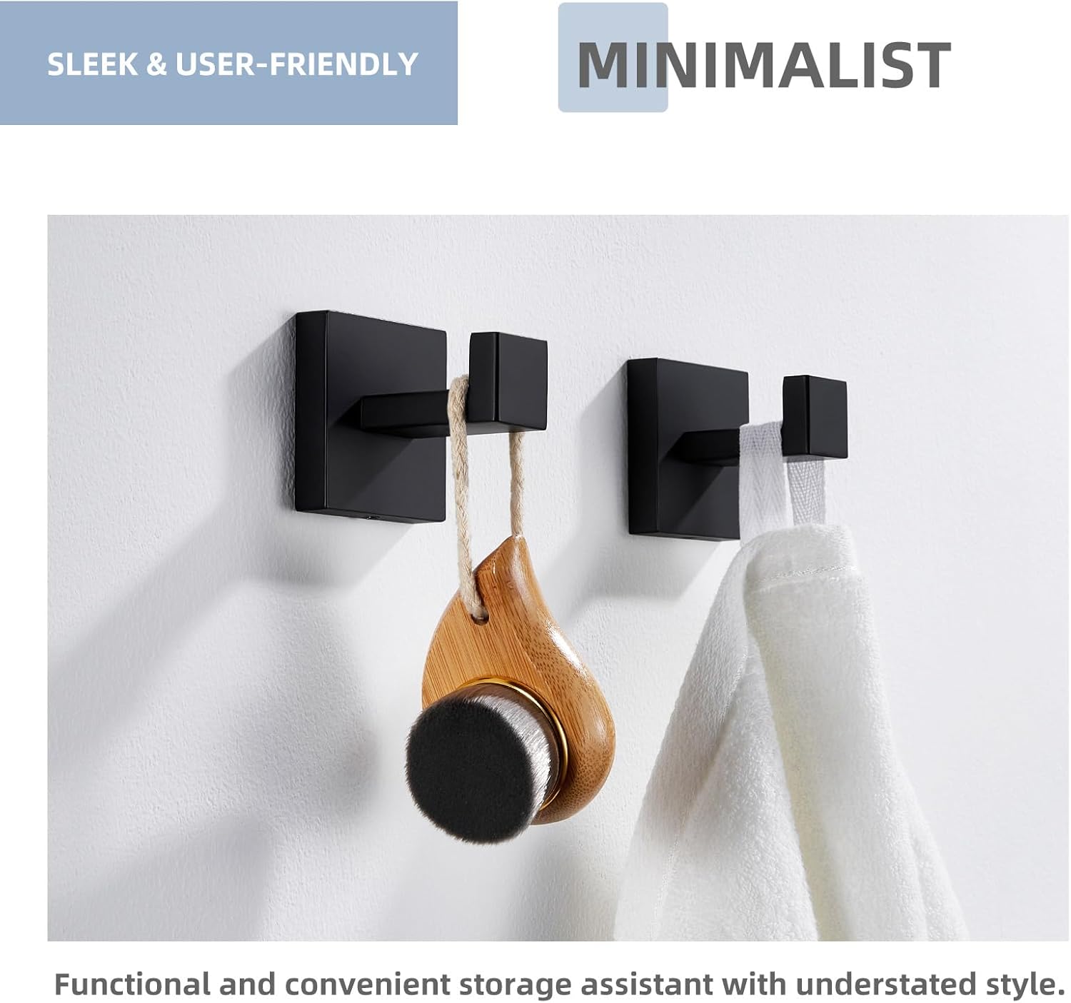 Angle Simple Matte Black Towel Hooks for Bathroom, SUS 304 Stainless Steel Square Wall Coat Hooks, 2 Pack