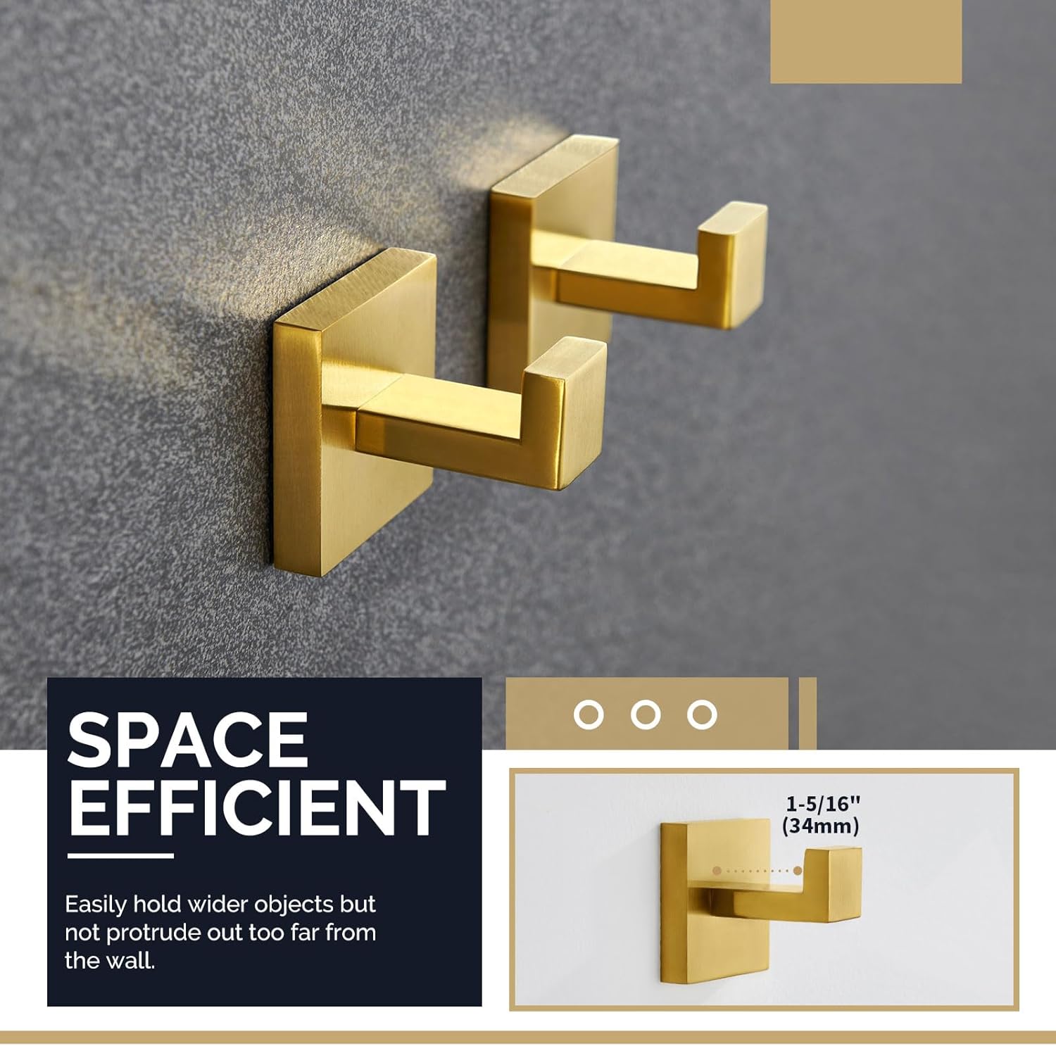 - HANDY & GORGEOUS: clean geometric with graceful profile deliver sophisticated appeal to your bathroom, sleek way to hold stuff like towels, robes or coats