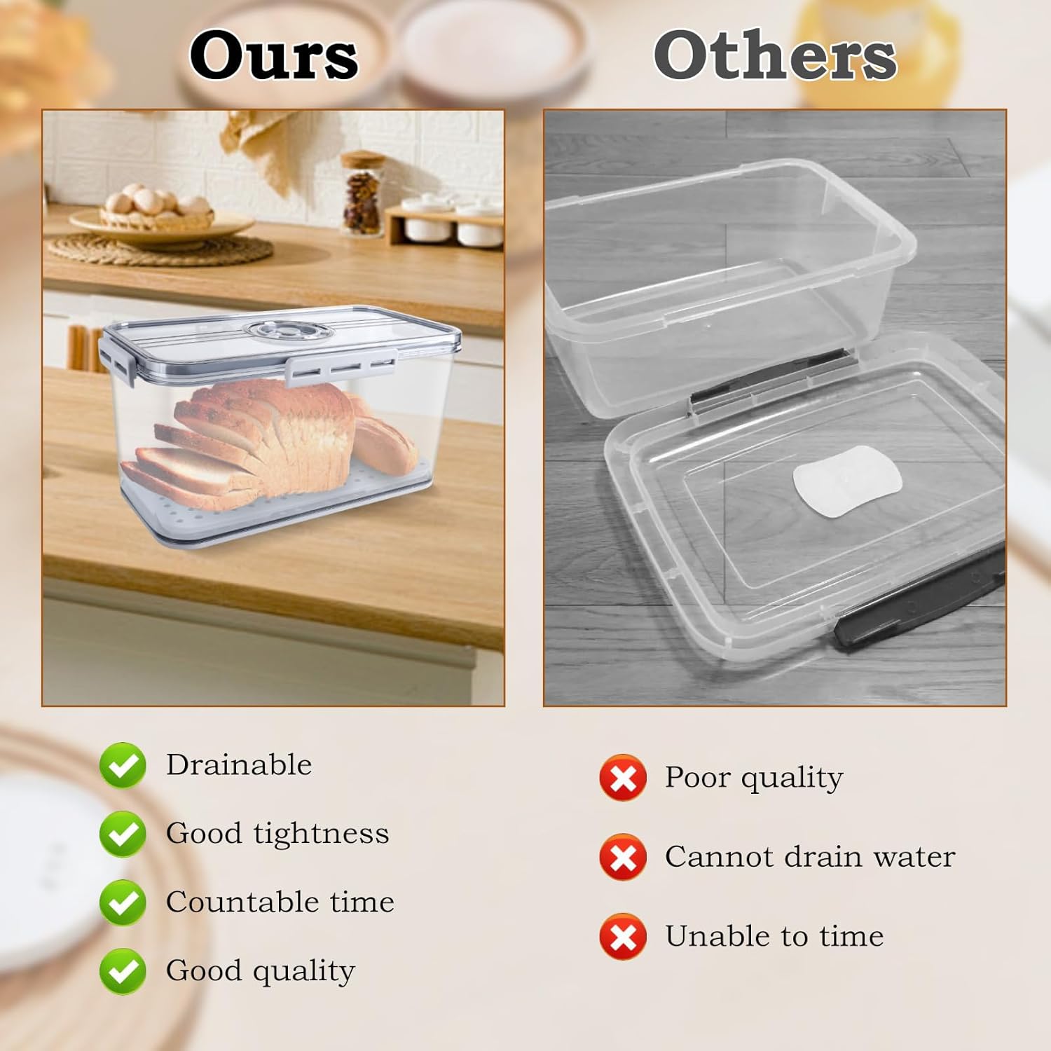 Bread Box for Kitchen Counter, Time Recording Bread Storage Container with Lid, Transparent Bread Storage Device with Drainage Pad, Homemade Bread Storage Container, Toasted Bread 11.8"x8.07"x5.71"