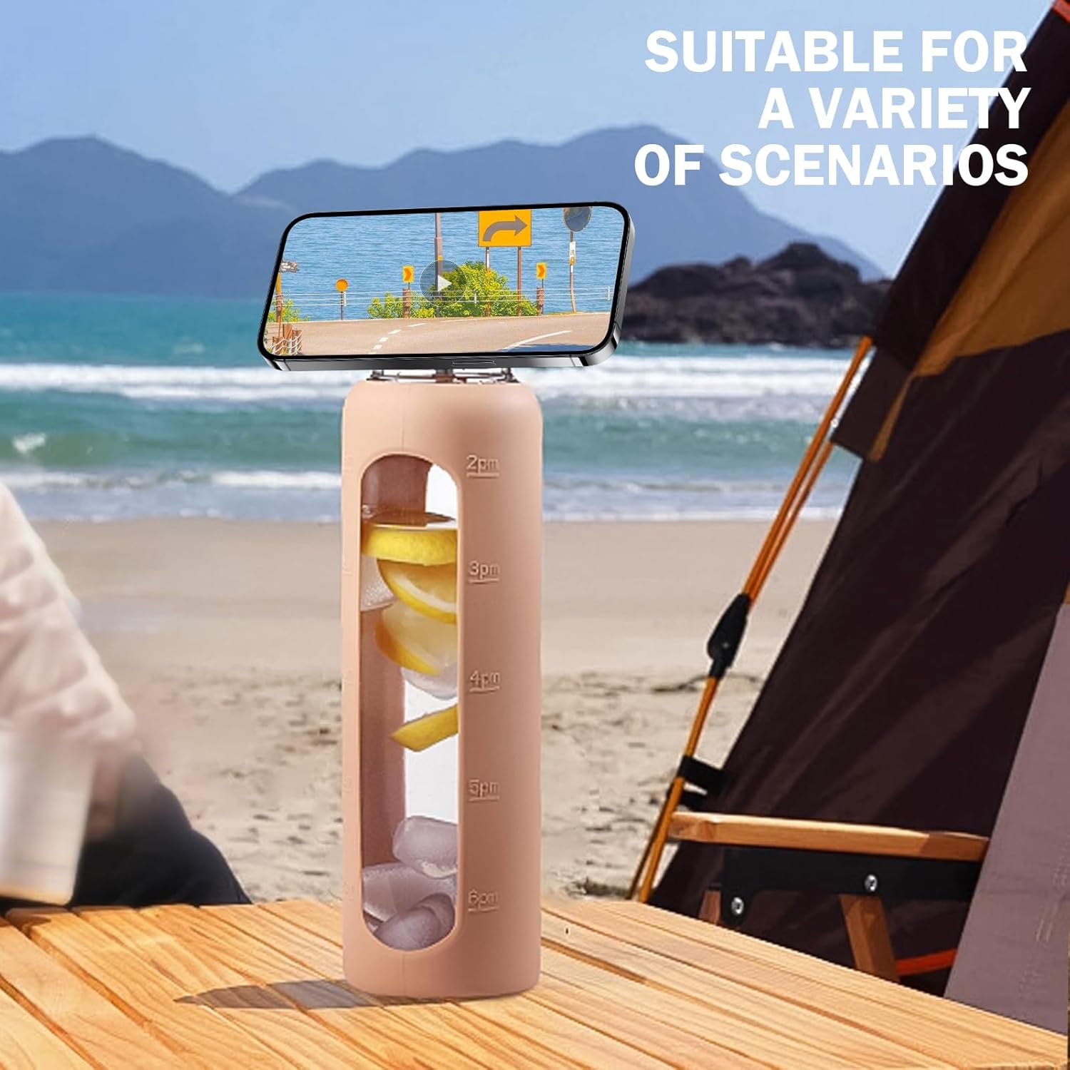 - PHONE STAND & CUP HOLDER FRIENDLY- Choosing the NOLOGLAZIC glass water bottles 32 oz not only keeps you hydrated but also doubles as a convenient phone stand, freeing your hands for capturing perfect moments and other activities such as work and workouts. Moreover, it fits most car cup holders, making it the perfect companion for drivers.