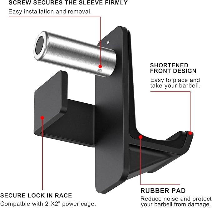 - 【J-Hooks】The J-Hooks are designed to support your barbell during various exercises, such as bench presses, high lifts, barbell shrugs, and more. They come with 8mm thick rubber pads that reduce noise and vibration, and protect your barbell and power rack from scratches and damage. They are strong and stable enough and each J-Hooks can hold up to 1500 lbs of weight and maintain balance.