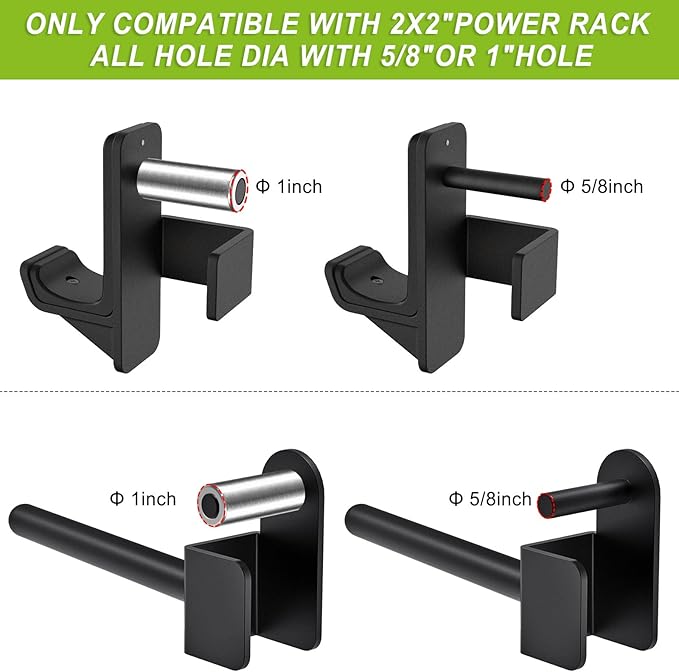- 【Packing List】1 Pair of J-Hooks for 2" x 2" power racks with 5/8" or 1"holes & 1 Pair of Weight Plate Holders for 2" x 2" power racks with 5/8" or 1" holes, Fits Standard 1-inch Weight Plates.