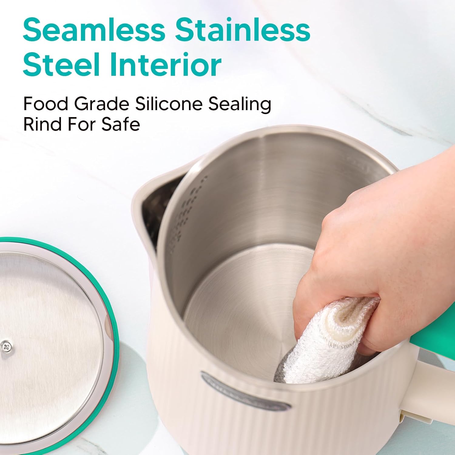 - 【Enjoy Safe and Healthy Drinking Water】~ Made from the seamless 304 stainless steel interior (stainless steel liner, stainless steel spout, stainless steel lid) and the food-grade material sealing ring on the lid, this electric tea kettle provides hot drinks with the pure flavor and long-term operation. The wide opening and removable lid make the electric water boiler kettle easy to reach hand in for cleaning.