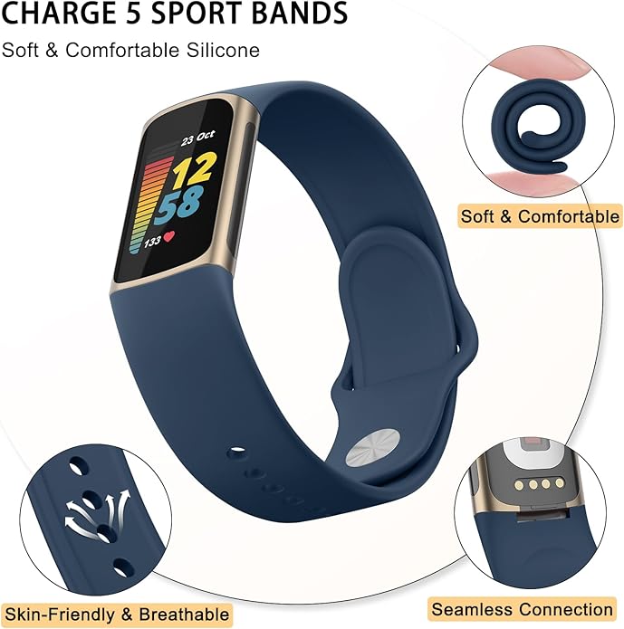 - 【Comfortable and Durable】This Fitbit Charge 5 silicone watch band is made of high-quality silicone material, bringing ultimate comfort and durability to prevent skin irritation. It has excellent sweat-proof, waterproof and anti-wear properties, soft, lightweight, durable and very comfortable to wear.