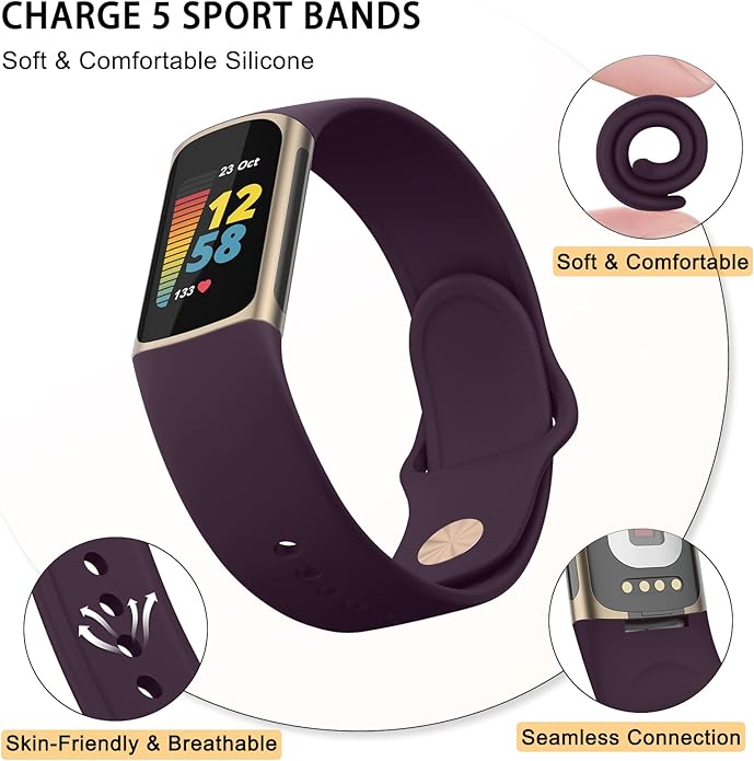 - 【Comfortable and Durable】This Fitbit Charge 5 silicone watch band is made of high-quality silicone material, bringing ultimate comfort and durability to prevent skin irritation. It has excellent sweat-proof, waterproof and anti-wear properties, soft, lightweight, durable and very comfortable to wear.