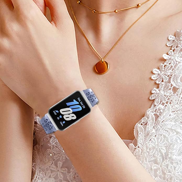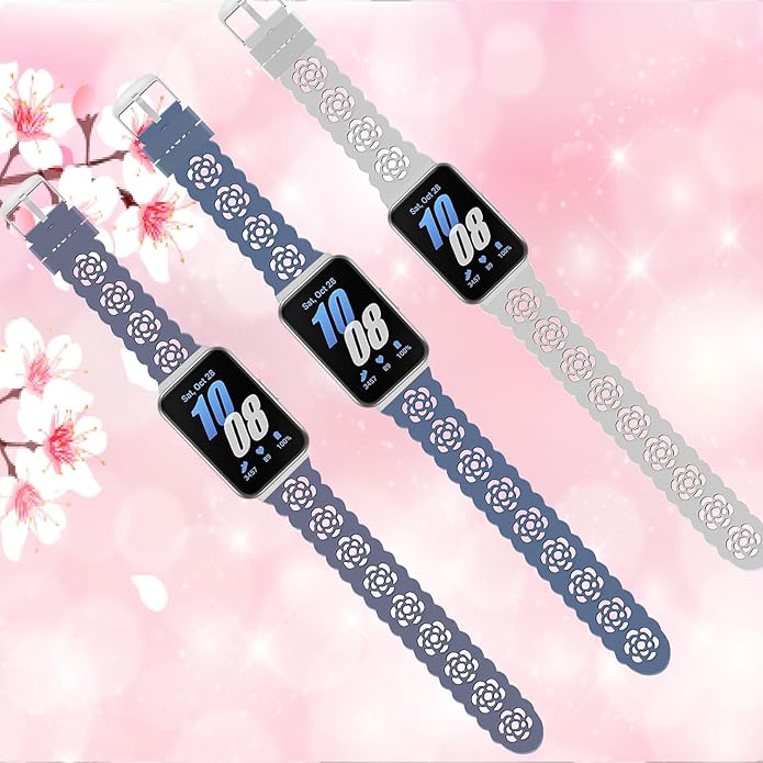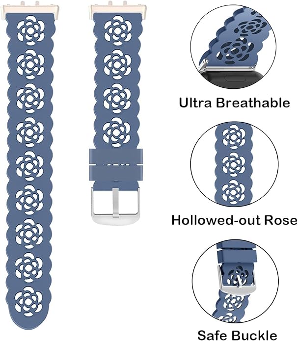 - NEWEST UNIQUE ROSE HOLLOWED-OUT DESIGN: The rose cutouts go along the whole silicone sport band, make it extremely pretty and fashionable, highlight your fitness tracker. Hollowed-out watch strap makes your wrist breathe freely and feel comfortable all day.