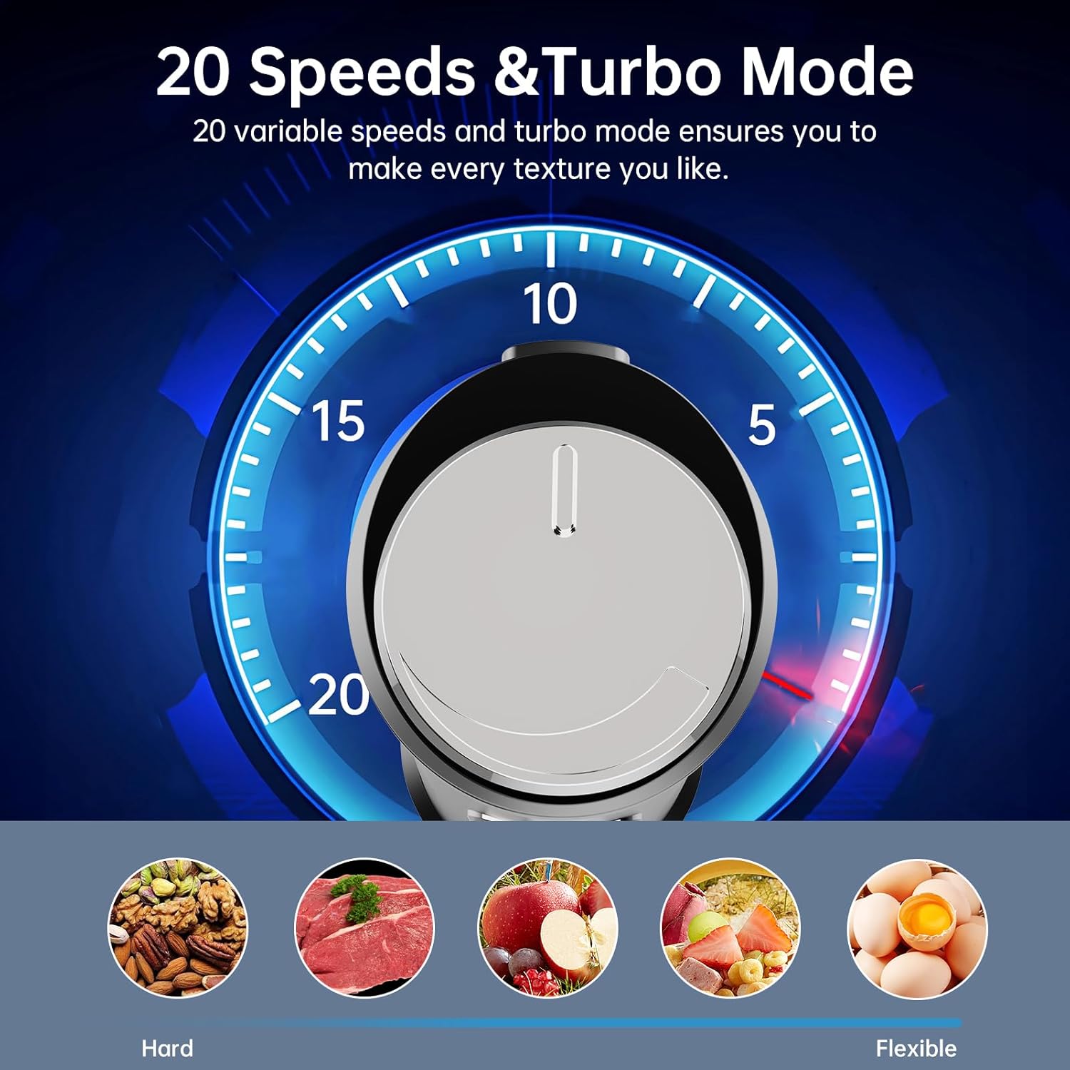 - 20-SPEED TO CREATE ANY TEXTURE YOU LIKE: In comparison to the 2-speed other brands offer, our hand mixer features 20 speeds( Low to high), giving you greater flexibility and maximum choice to prepare smoothies, baby foods, soups, shakes, and more. A separate Turbo Button is used to blast ice faster and better.