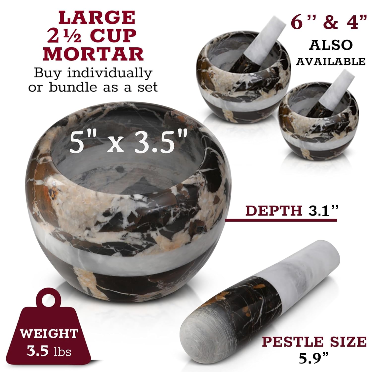 Gusto Nostro Natural Marble Mortar and Pestle Set | 5 Inch - 2.5 Cup Large Mortar Pestle Set for Grinding Herbs, Nuts, Grains | Pesto Grinding and Guacamole Stone Bowl | Marble Spice Crusher