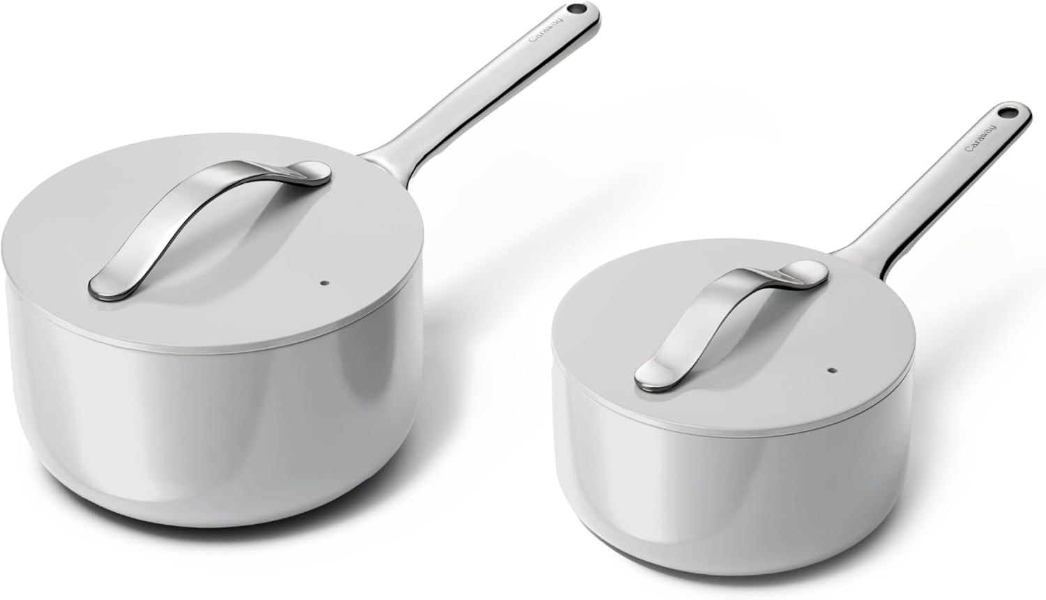 Caraway Nonstick Ceramic Sauce Pans with Lids (3 qt & 1.75 qt) - Non Toxic, PTFE & PFOA Free - Oven Safe & Compatible with All Stovetops (Gas, Electric & Induction) - Gray