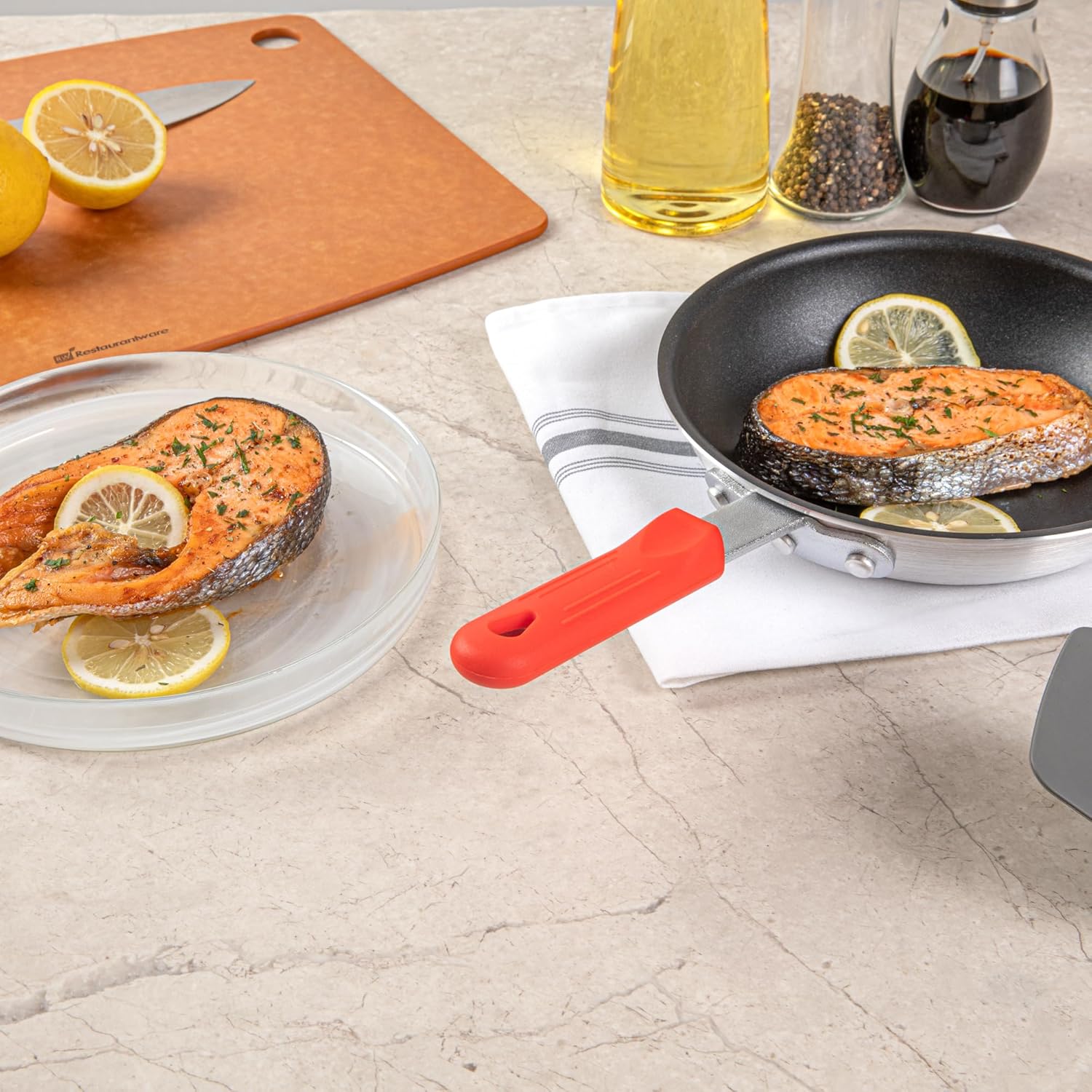 Restaurantware Pan Handle Sleeve 1 Pack Of 4.25" Removable Silicone Pot Handle Holder Fits 8-inch And 9-inch Pans No-Slip Heat-Resistant Dishwashable Red Aluminum Fry Pan Covers for Home Kitchen