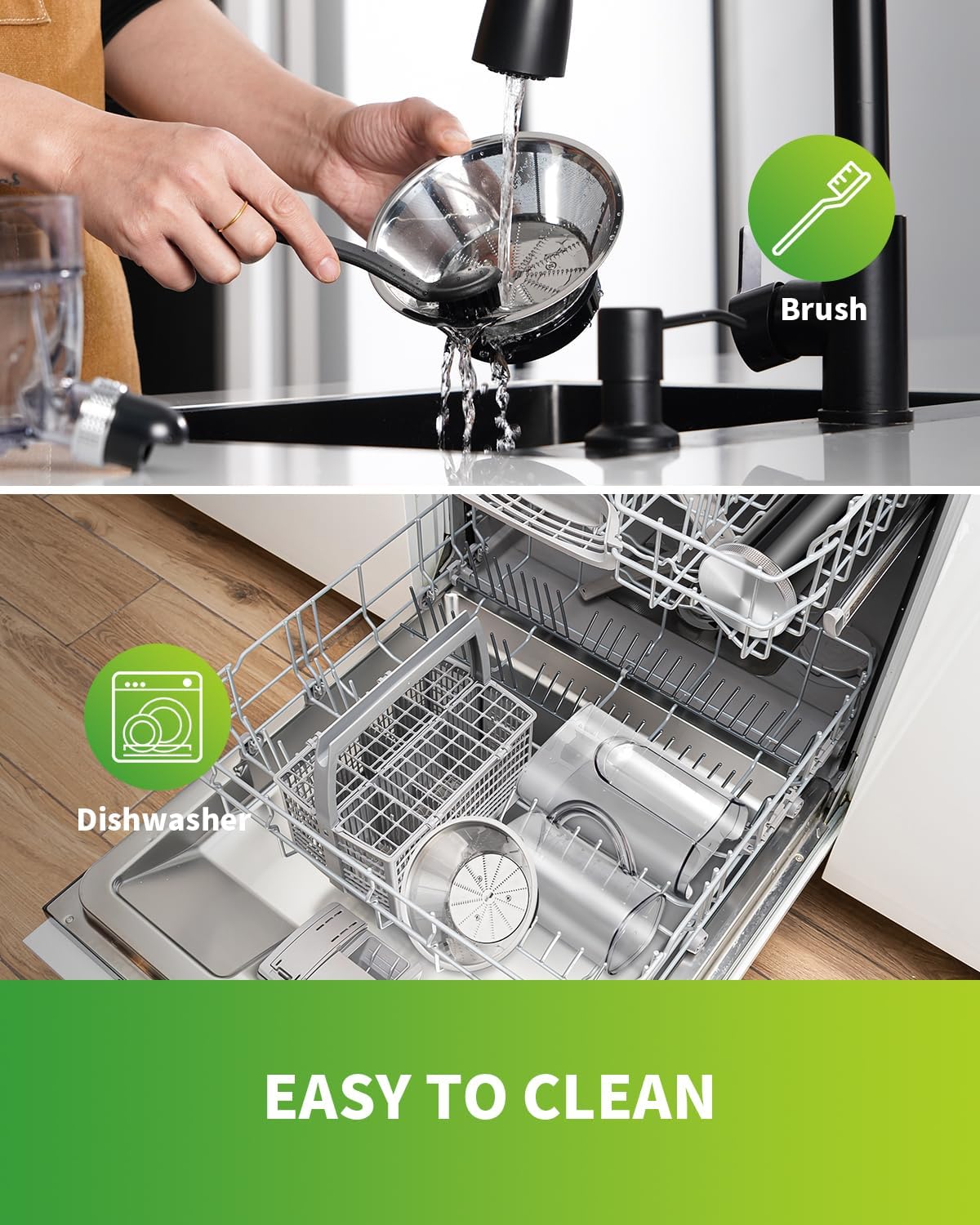 - 【Easy to Clean】- Equip a special brush to make cleaning easier and faster. Some detachable parts of the juicer maker are dishwasher (Top Shelf Only) safe and can be rinsed directly with water. While you are still enjoying the juice, parts has been cleaned well