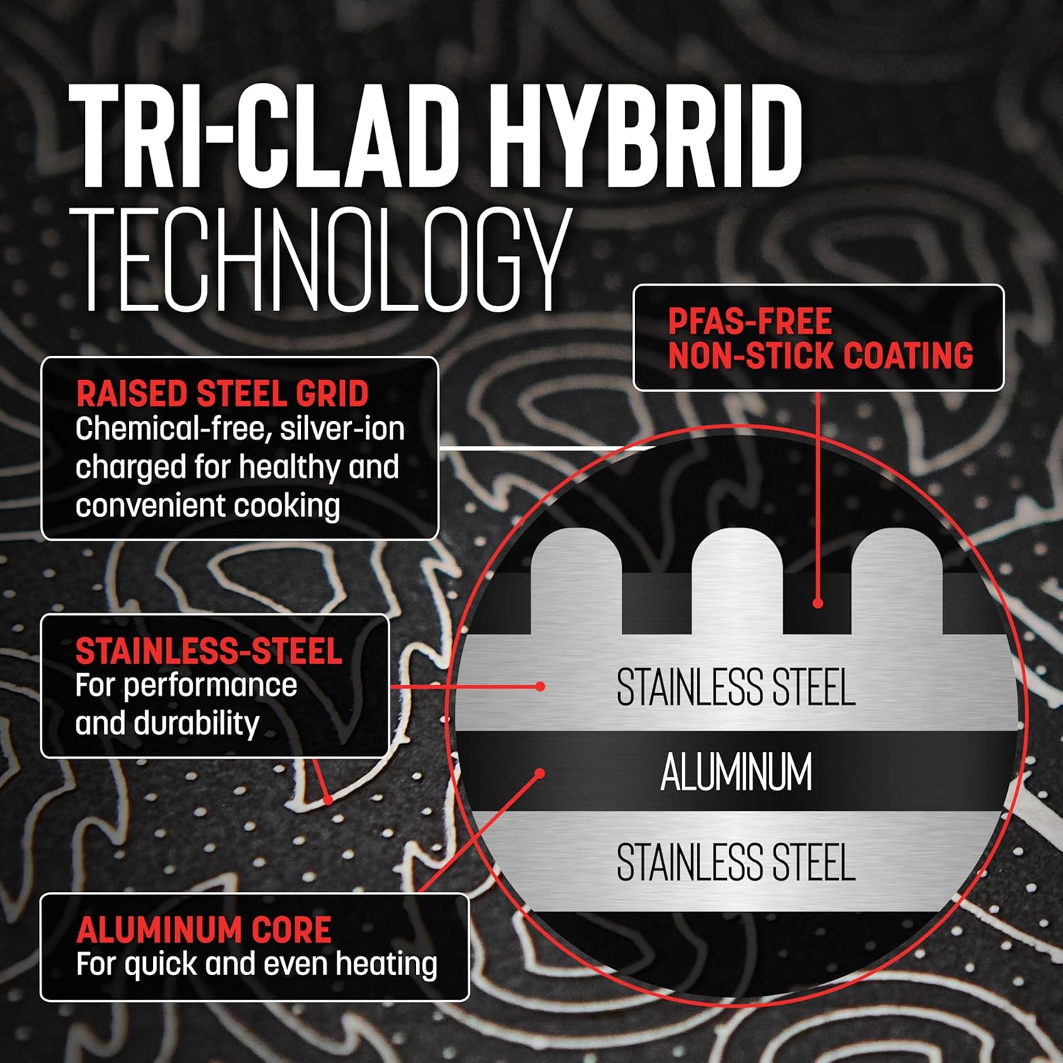 - PFAS-FREE NONSTICK: Hell’s Kitchen Tri-Clad Hybrid cookware contains a diamond reinforced non toxic ceramic nonstick, free of forever chemicals and silver-ion charged for healthy cooking.