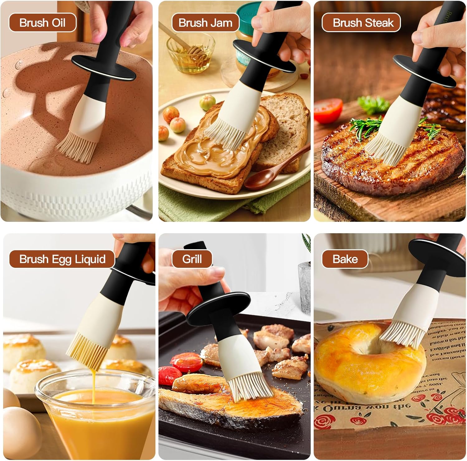 - 【Soft Silicone Brush Head & Extended Handle】: Our soft silicone brush head delivers smooth, consistent basting without tearing food or leaving streaks. Perfect for brushing oil or sauce evenly on meats, bread, or veggies—The extended anti-slip handle keeps your hands clean and away from the heat.