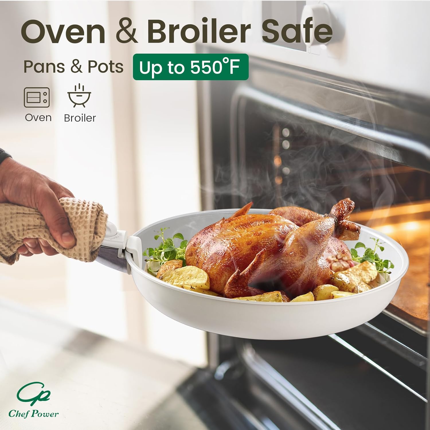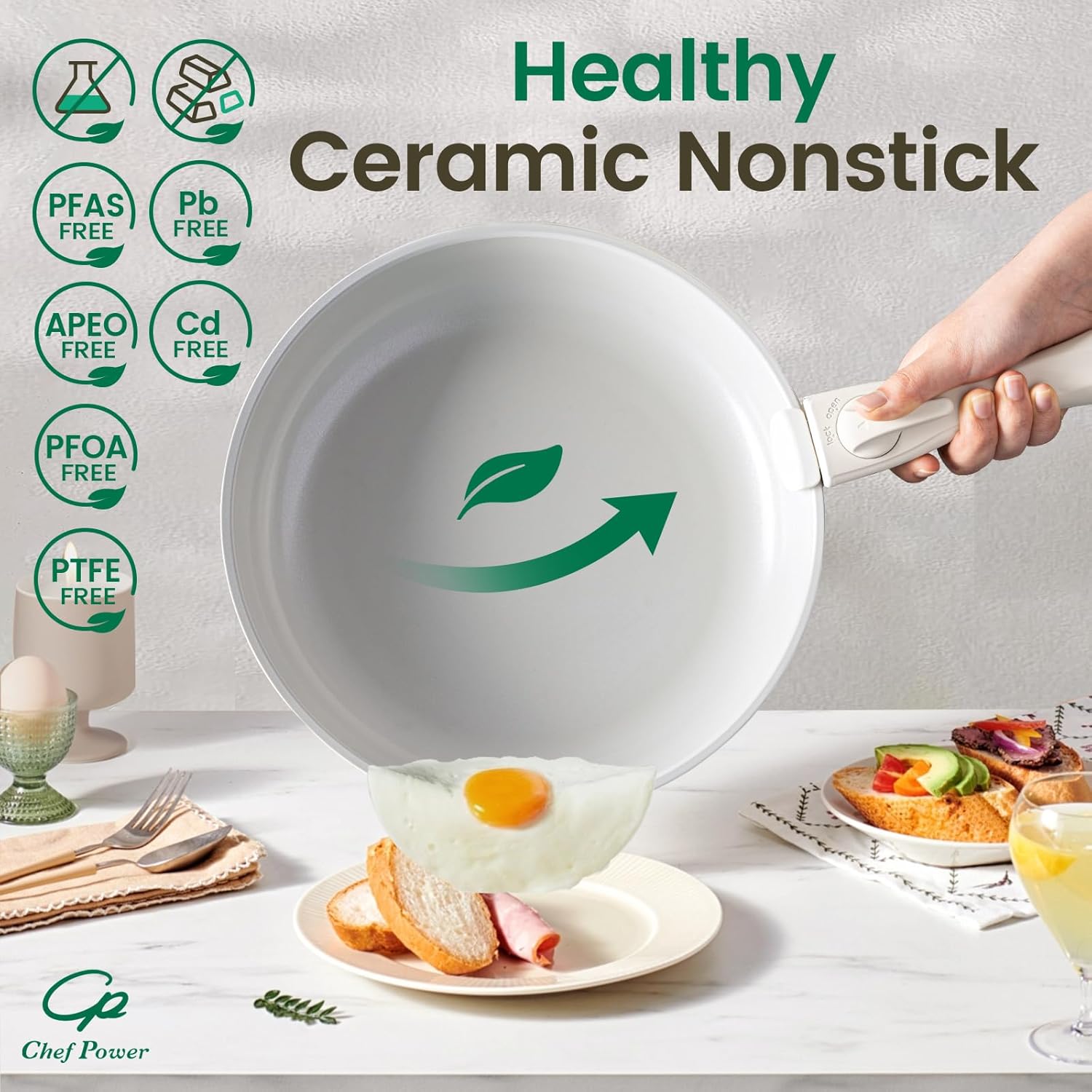 - Easy To Clean - Chef Power pans and pots set is designed with ceramic nonstick throughout, support dishwasher and handwash.