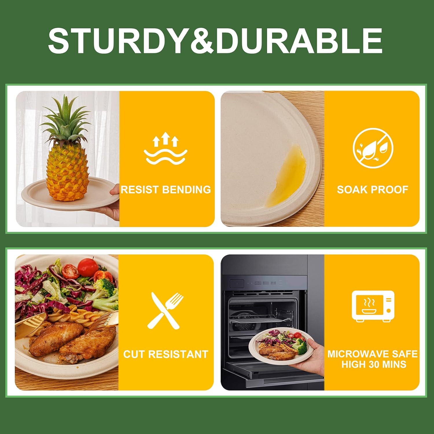 - 【Versatile & Easy to Use】Whether you're hosting a picnic, party or any other event, these biodegradable paper plates are suitable for any hot or cold dish. Disposable paper plates are a great way to ensure quick and easy cleanup, you just throw them away after using and save time by not having to clean. Allowing you to focus on your day and have more time with family and friends making unforgettable memories.