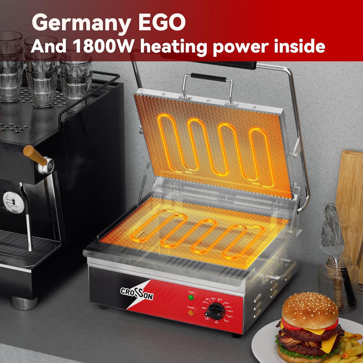 - Quick and Thorough Heating:Powerful 1800W with a temperature range of 175℉~575℉ cook all food items evenly and thoroughly.Germany made EGO thermostat inside,not only even and precise heat distribution but also duable in use.