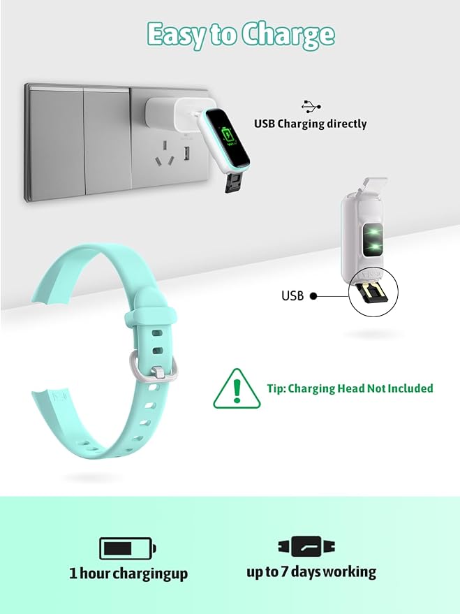 • [Easy To Charge & No Cable Needed] Cordless USB charging mode ( this tracker is built in USB charger, no cable needed,do not worry about losing charge cabel ), easy and convenient to charge. Long battery life lasting for 5-7days with full charging ( Battery life and charge cycles vary with use and other factors ).
