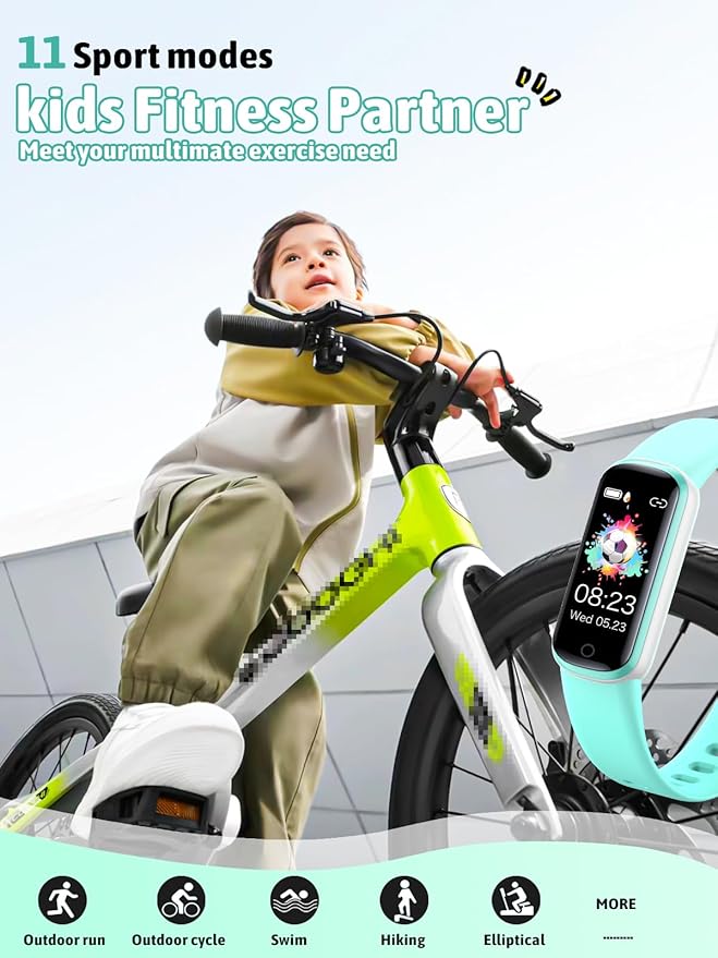 • [24-hour Intelligent Activity Tracker] Automatically tracks your kids steps,distance and calories burned. Supports 11 activity modes: Walking,Running,Bicycle,Dance,Basketball,Football,Tennis,Climbing, Fitness. You can set the target number of steps, and when the child is finished, you can reward the child, let the child love sports.