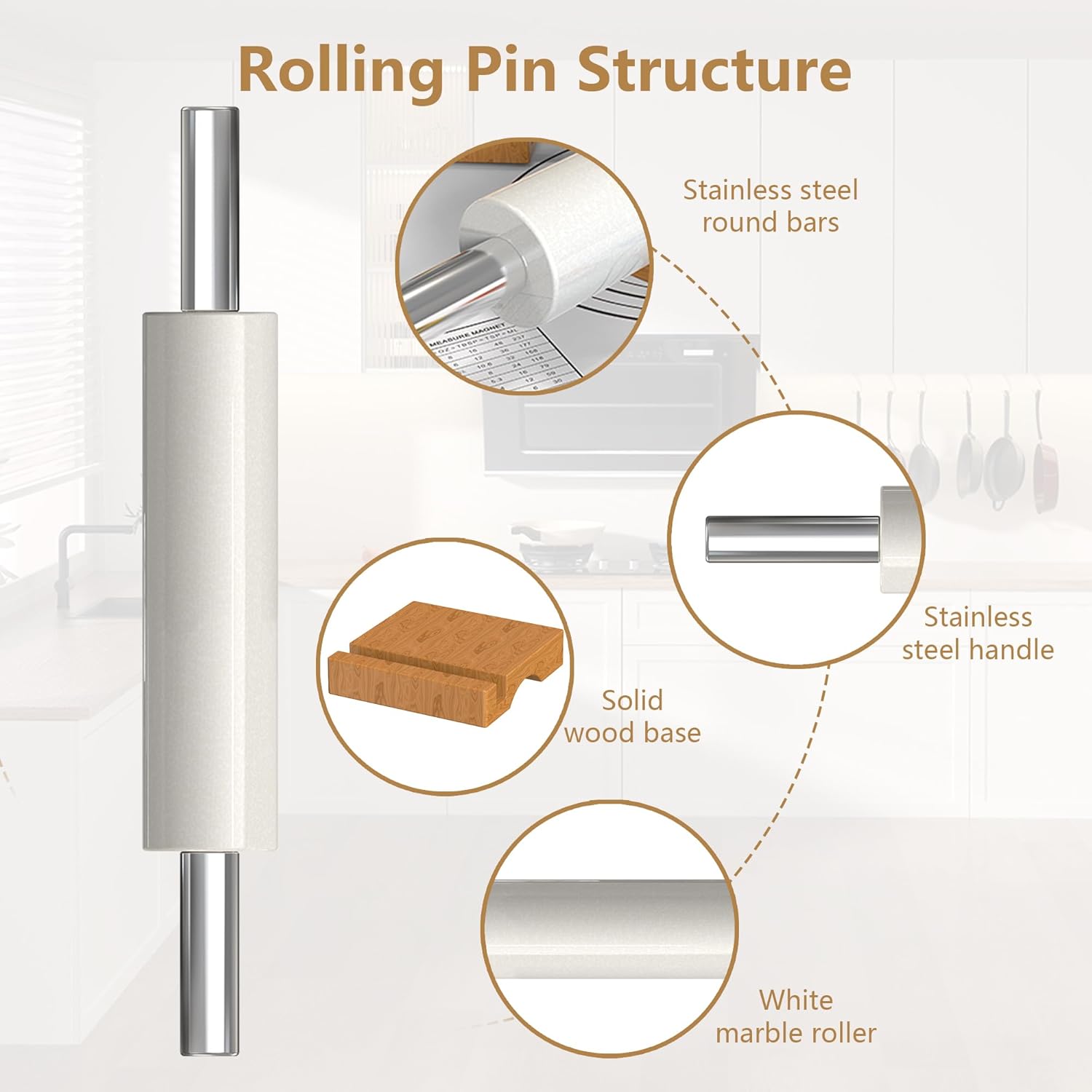 - 🍕【3 THICKNESS RINGS & WOODEN STAND】1/16“ (2mm), 1/6” (4mm) and 1/4” (6mm) thickness rings of different diameters allow the rolling pin to roll out dough of different thicknesses. The solid wooden stand is suitable for marble rolling pins and holds it in place to prevent the rolling pin from breaking from unintentional rolling. Overall dimensions - 18.5 in. x 2.5 in. x 2.5 in.