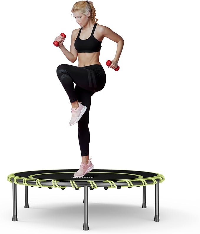 - ✅【Unique and Fun】: Trampoline an Aerobic Exercise, tone your body,Soft but Strong Bounce Back workout can maximize your cardio endurance, stamina,help build muscle mass and strengthen the shoulder, hip and leg muscles.A Perfect Home Gym Equipment for Men and Women,Even at an entry level, you’ll be able to pick it up quickly.