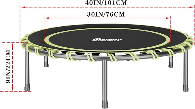 - ✅【Stable Structural Design】:Gielmiy Fitness Trampoline is made of thick tube which is 25MM, 6 legs 25MM of the diameter ,supports for more durability and covered with White powder coating to prevent rust and corrosion.Thanks to its premium quality, boasts an extended lifetime to witness your precious journey from a total beginner to a star pro!