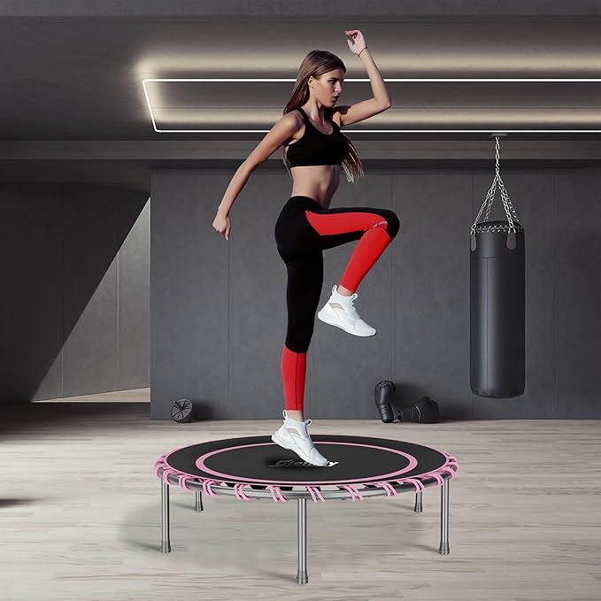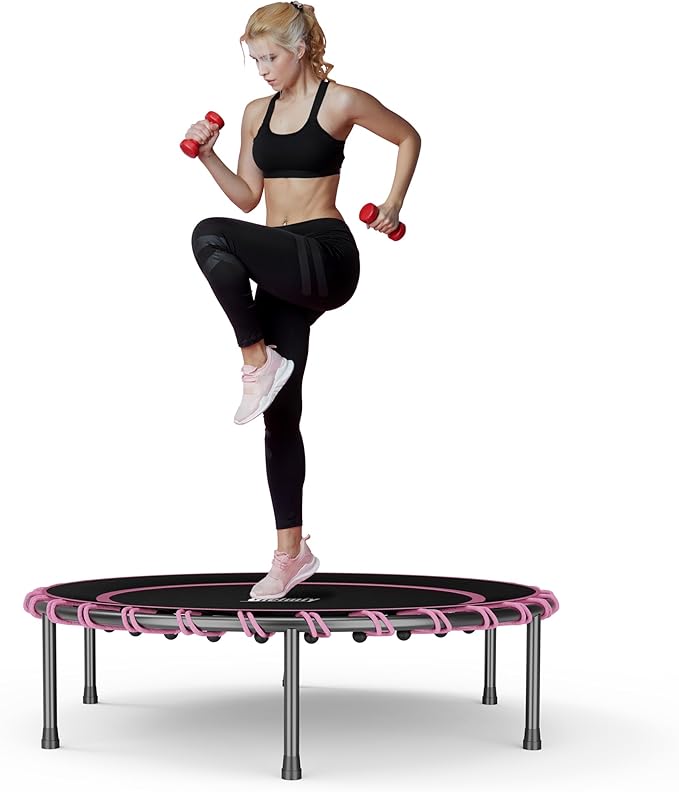 - ✅【Unique and Fun】: Trampoline an Aerobic Exercise, tone your body,Soft but Strong Bounce Back workout can maximize your cardio endurance, stamina,help build muscle mass and strengthen the shoulder, hip and leg muscles.A Perfect Home Gym Equipment for Men and Women,Even at an entry level, you’ll be able to pick it up quickly.