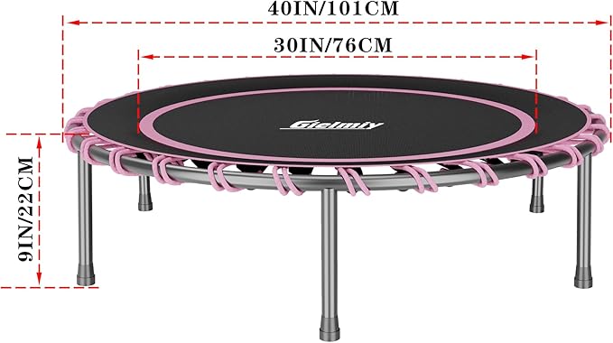 - ✅【Stable Structural Design】:Gielmiy Fitness Trampoline is made of thick tube which is 25MM, 6 legs 25MM of the diameter ,supports for more durability and covered with White powder coating to prevent rust and corrosion.Thanks to its premium quality, boasts an extended lifetime to witness your precious journey from a total beginner to a star pro!