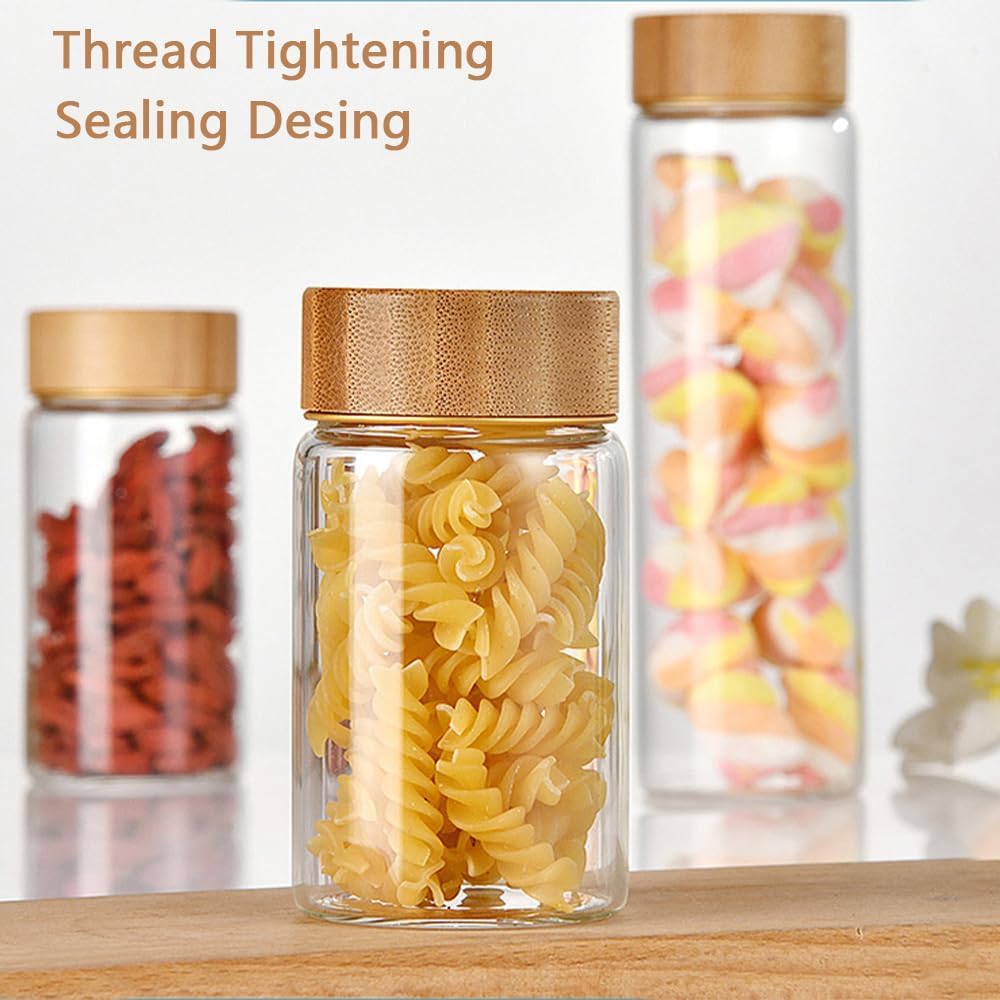 - 【High Sealing Performance】The small glass containers with lids, wide bottle mouth has a threaded design and the internally threaded bamboo lid.After tightening the spice jars lid, it can isolate air and create an airtight and moisture-proof effect, keeping food dry for a long time.Also great for use as candle jars for making candles.