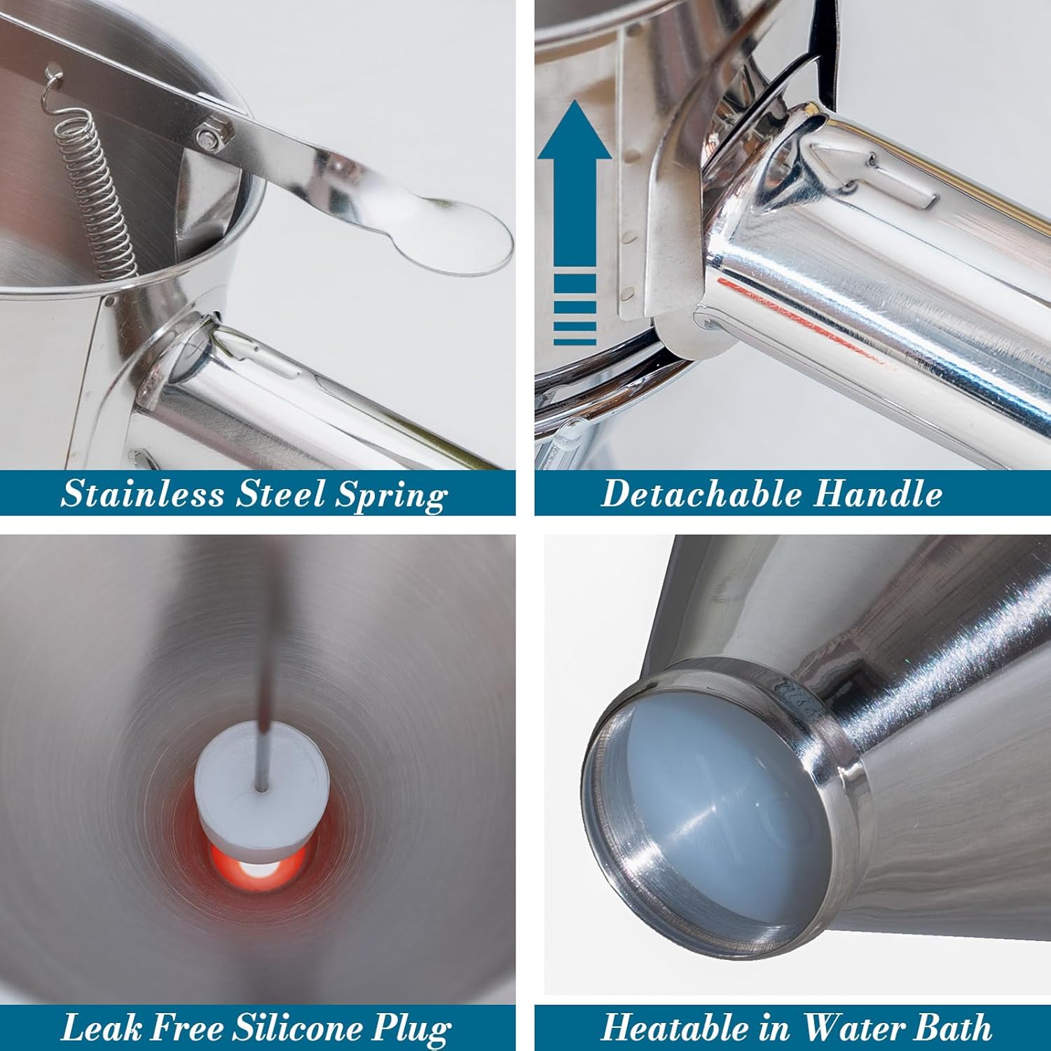 - Sturdy Construction: The stainless steel pancake batter dispenser is designed and manufactured for long-term heavy commercial use. It is rust-resistant, sturdy, and built to serve you reliably for years. The metal funnel can be heated in a water bath.