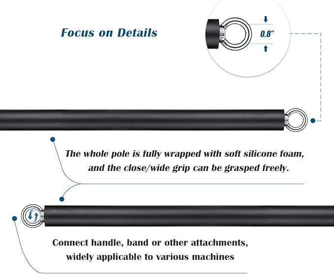 - [Multi-functional Lat Bar] - Attached to cable machine, or with resistance bands can help you do various exercises, such as weightlifting training, squats, and so on. Improve biceps, triceps, shoulders and back, etc, keep your body in good shape.