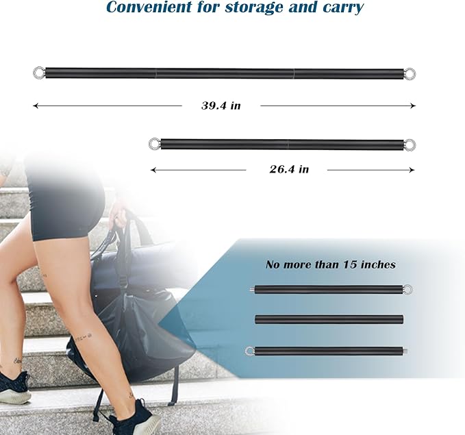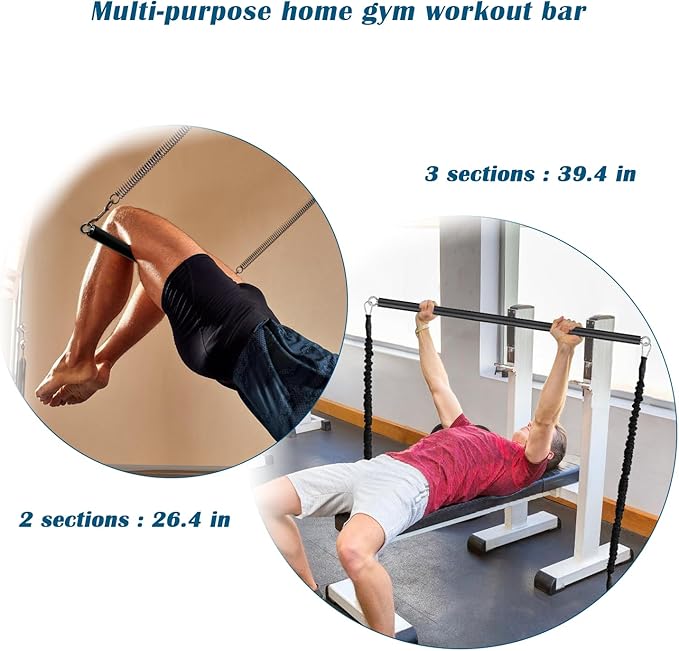 - [Professional Gym Bar] - Long bar(39.37 inches): completing actions such as lat pull down, can exercise your back and shoulder muscles. Short bar(13 inches): Suitable for lifting, rowing, Strengthen your biceps, triceps, and abdominal muscles.