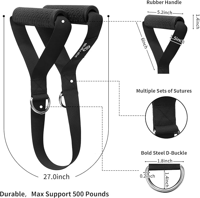 - 【High Quality Materials】High quality gym cable machine handle, Core is made of industrial strength ABS and covered with TPR material, Comfortable to hold,anti slip and durable,thickened steel D-ring, Ripstop nylon fabric strap, can provide a maximum load of 500LB, safe and reliable