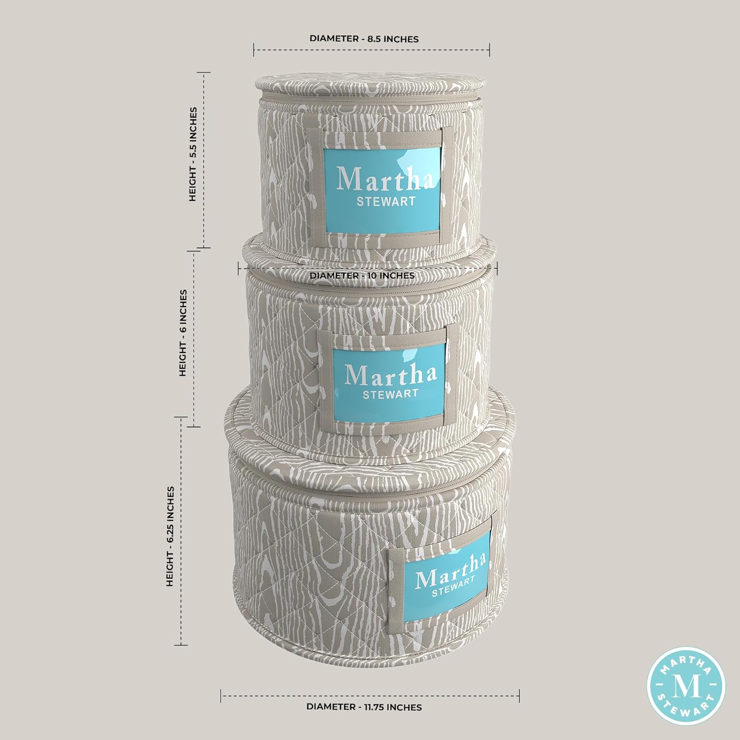 Martha Stewart Dinnerware Stemware Glassware Organizer Home Storage Container Case, 3 Piece Dinnerware Set Organizer For Dessert, Salad and Dinner Plates With Felt Dividers, Skyland Faux Bois