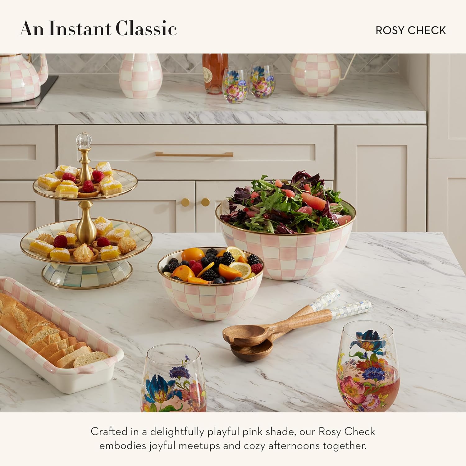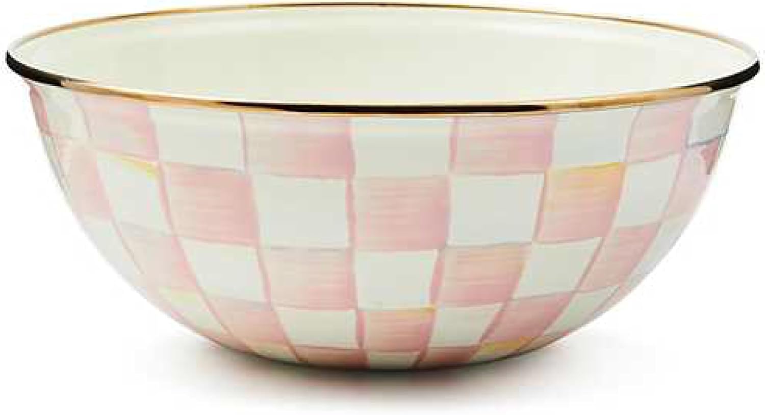 - ELEGANT ESSENTIAL: Elevate any meal with this decorative bowl. It has a hand-glazed heavy-gauge steel underbody and a bronzed stainless-steel rim and is decorated with hand-painted pink-and-white checks.