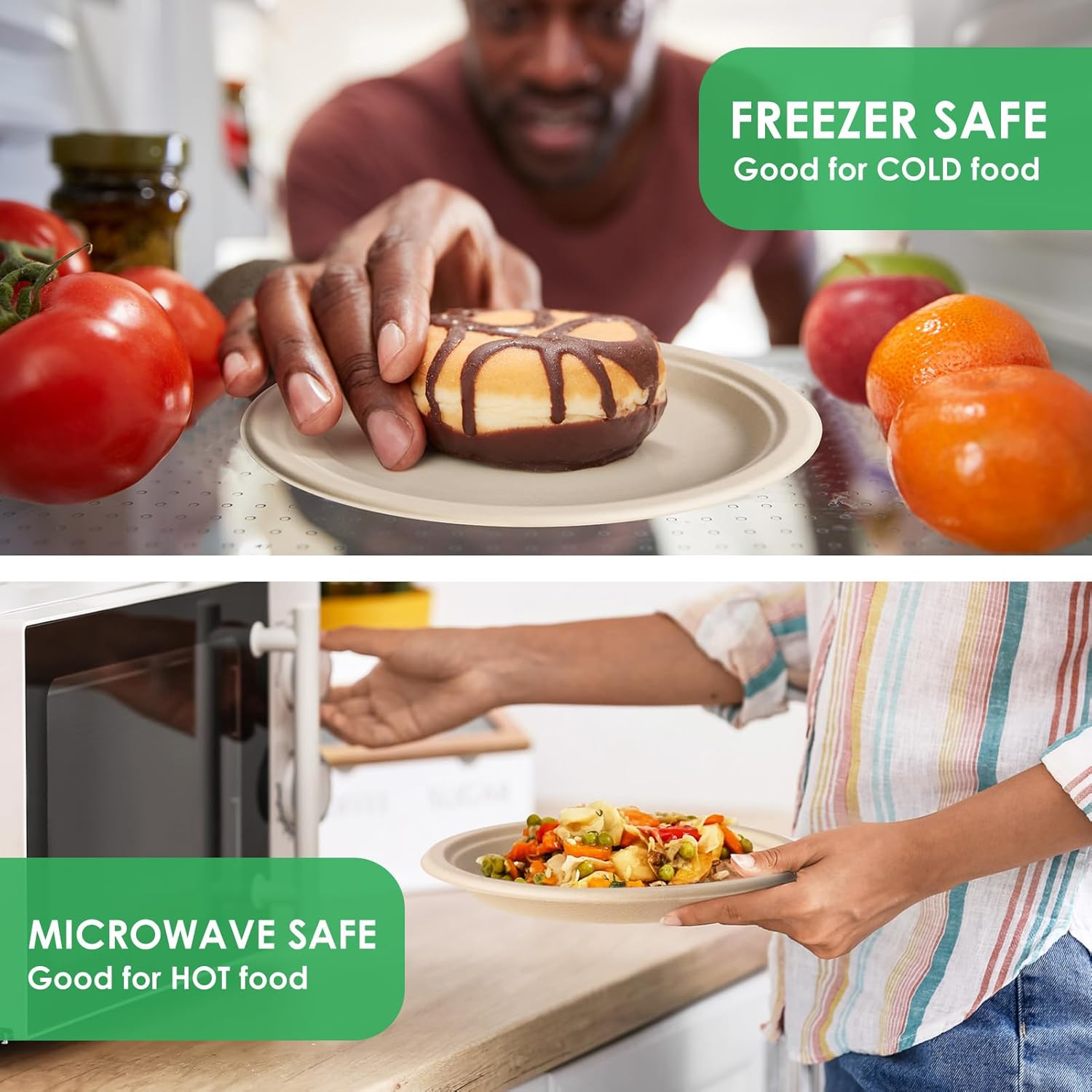 - 【Microwave Safe】Our disposable plates adopt integrated molding upgrade technology, the plates is thicker and stronger. Microwave heating up to 248°F without deforming