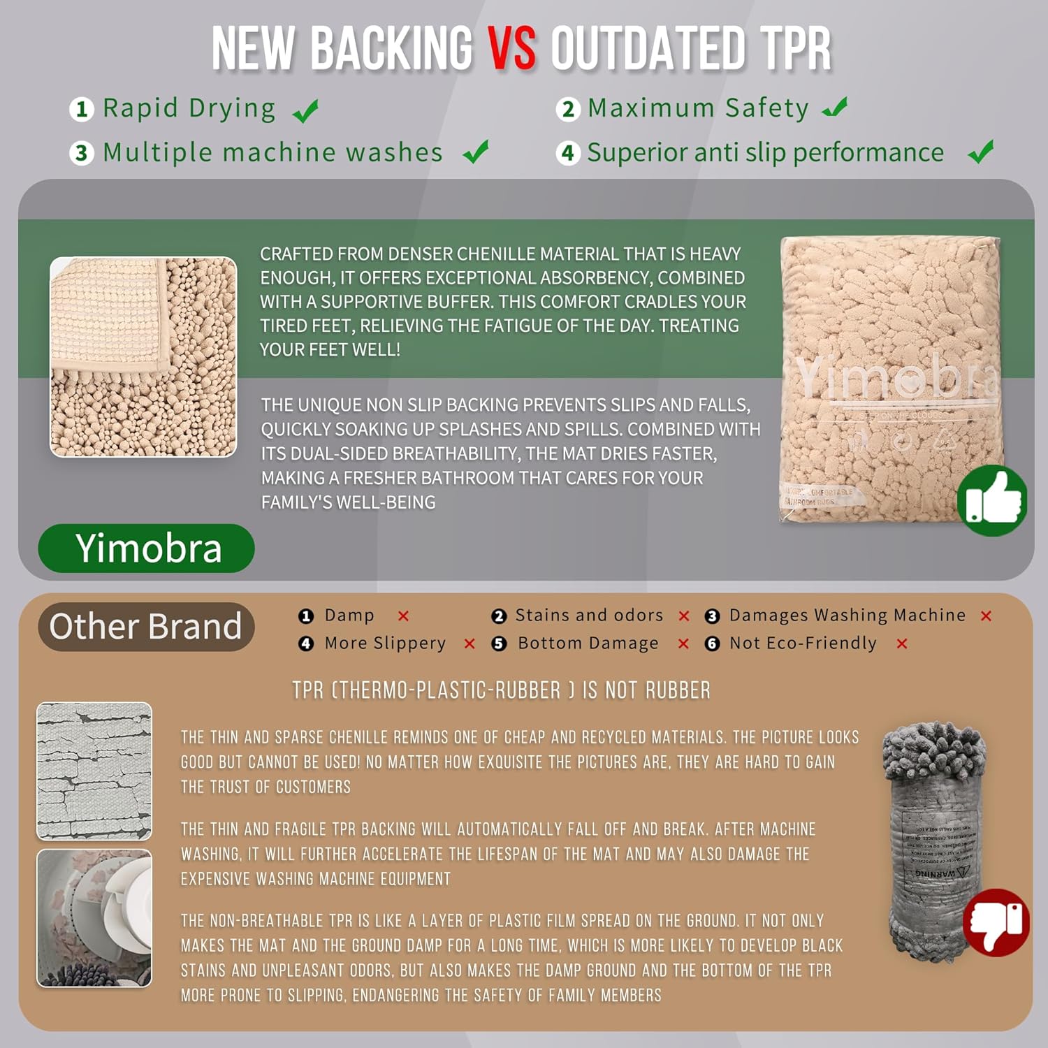 - Total Grip Safety & Quick Dry: Yimobra bath rug features a feather-light yet ultra-grippy hot-melt backing that stays firmly in place on wet surfaces. Its vertical air-channel Polyester fibers ensure rapid and complete dryness, providing instant dry safety the moment you step out of the shower. The product is tested for harmful substances, performance, longevity, and emissions in accordance with the OEKO-TEX Standard 100