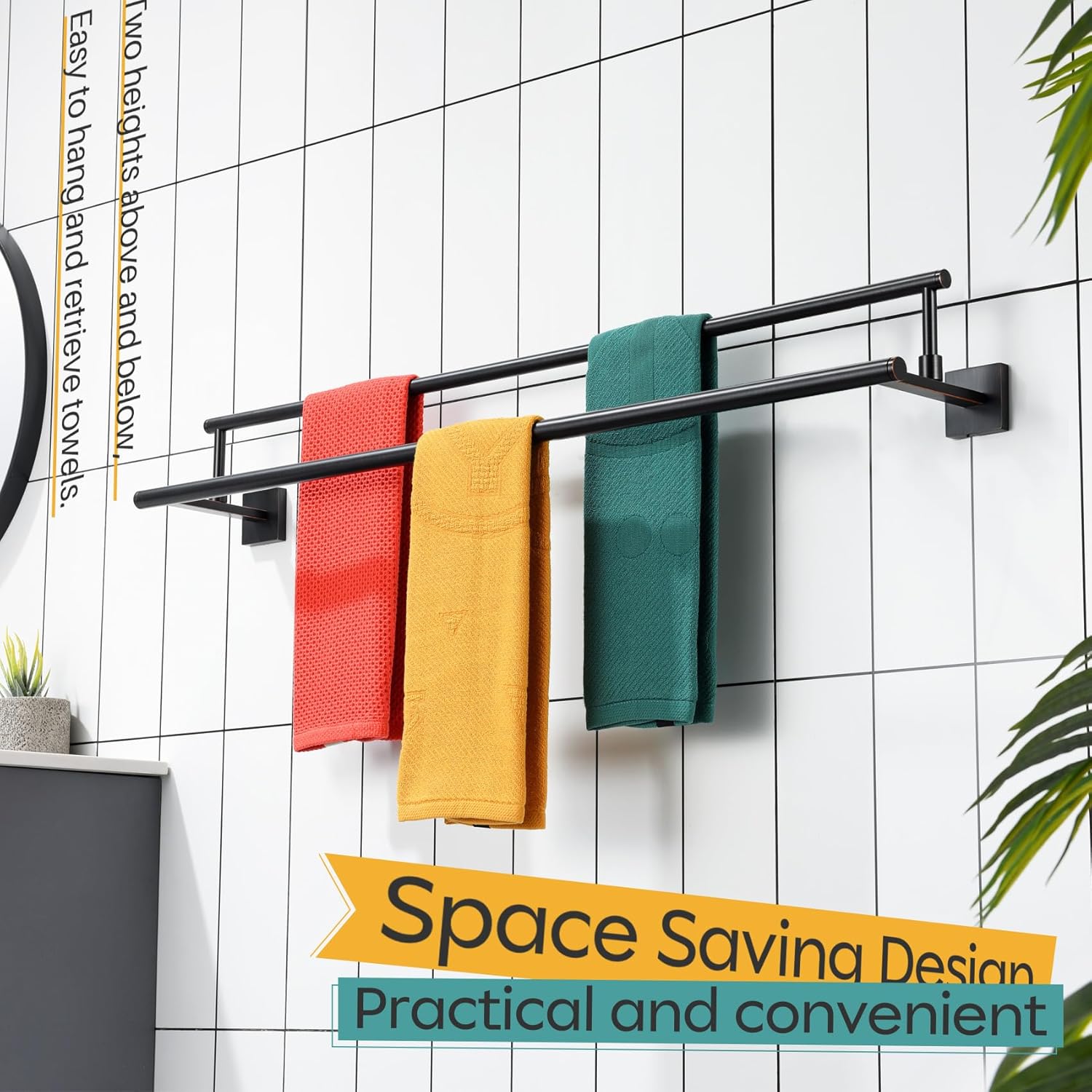 - ◄ MODERN DESIGN ► KOKOSIRI double towel rack with two rails combines elegant square, sleek round, and unique rectangle elements to bring a modern aesthetic to your bathroom, shower room, toilet, kitchen, washroom, pool or garage. You can choose from our series of bathroom hardware for a complete, coordinated look to your place