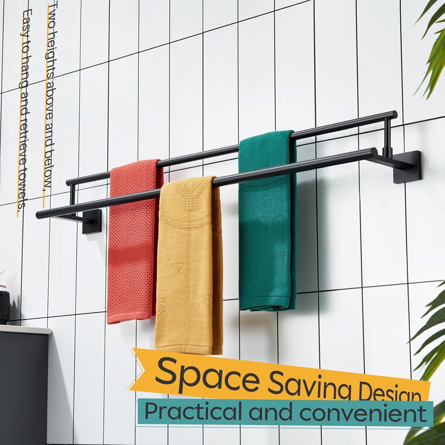 KOKOSIRI Bathroom Towel Bars 36-Inch Double Towel Rails Matte Black Towel Holder Overlength for Kitchen Toilet Stainless Steel B5009BK-L36
