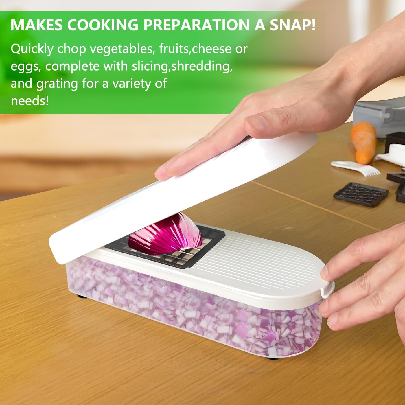 - Sturdy and Durable - This vegetable chopper with container is made of super hard ABS plastic, making it easy to cut vegetables no matter how many meals you prepare. Our vegetable cutter is designed with high quality, BPA-free materials in mind for your safety.