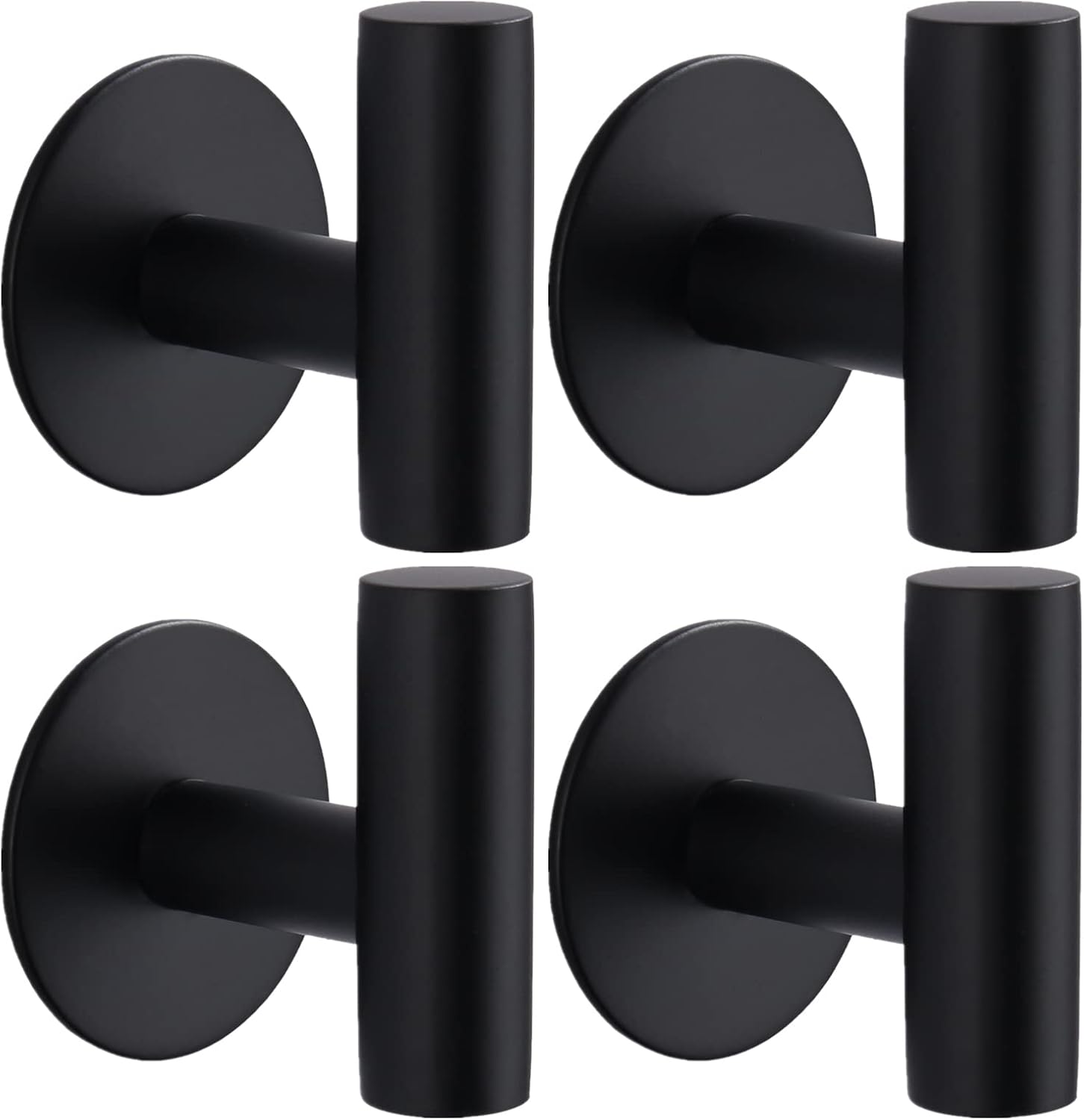 Adhesive Towel Hooks, Heavy Duty Wall Hooks Stainless Steel Waterproof Shower Towel Hooks, Coat Hook for Hanging Clothes, Adhesive Hooks for Bathroom, Glass Window- 4 Pack, Black
