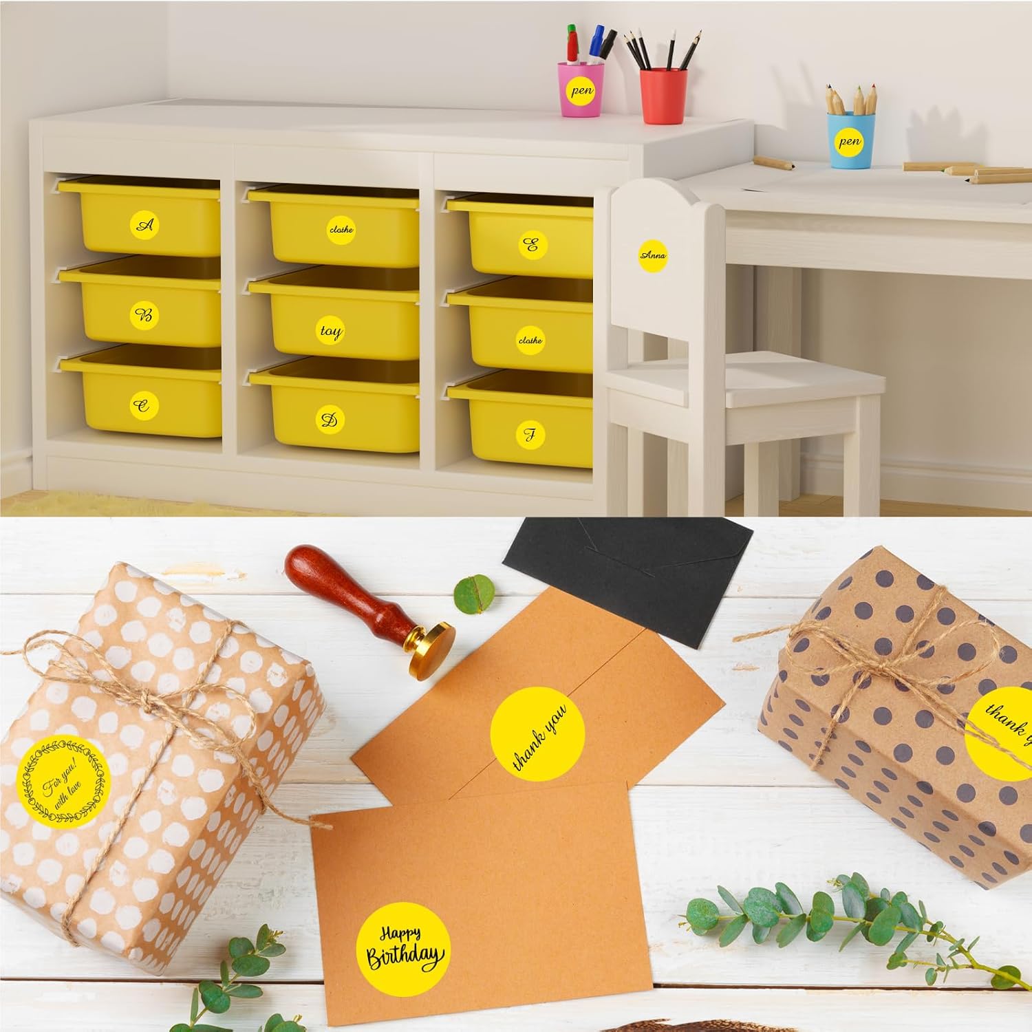 starboling Thermal Labels,2 Inch Yellow Round Thermal Printer Stickers,Self-Adhesive Round Direct Thermal Labels,Thermal Stickers for DIY Logo Design,Name Tag (500/Roll)