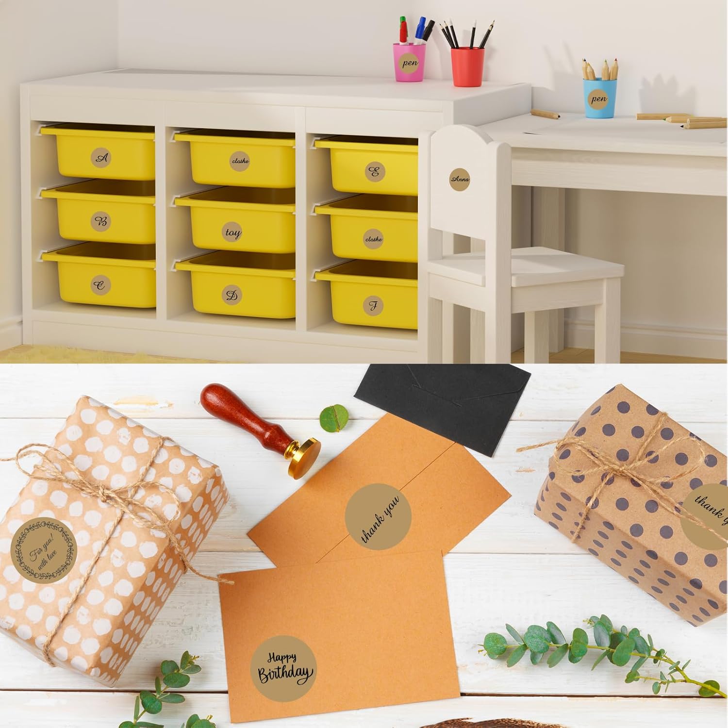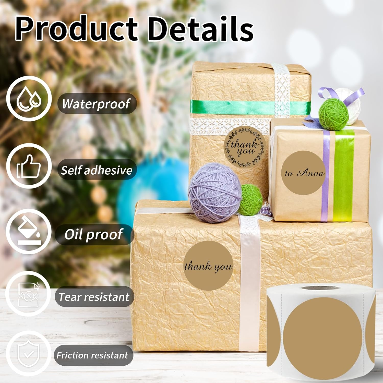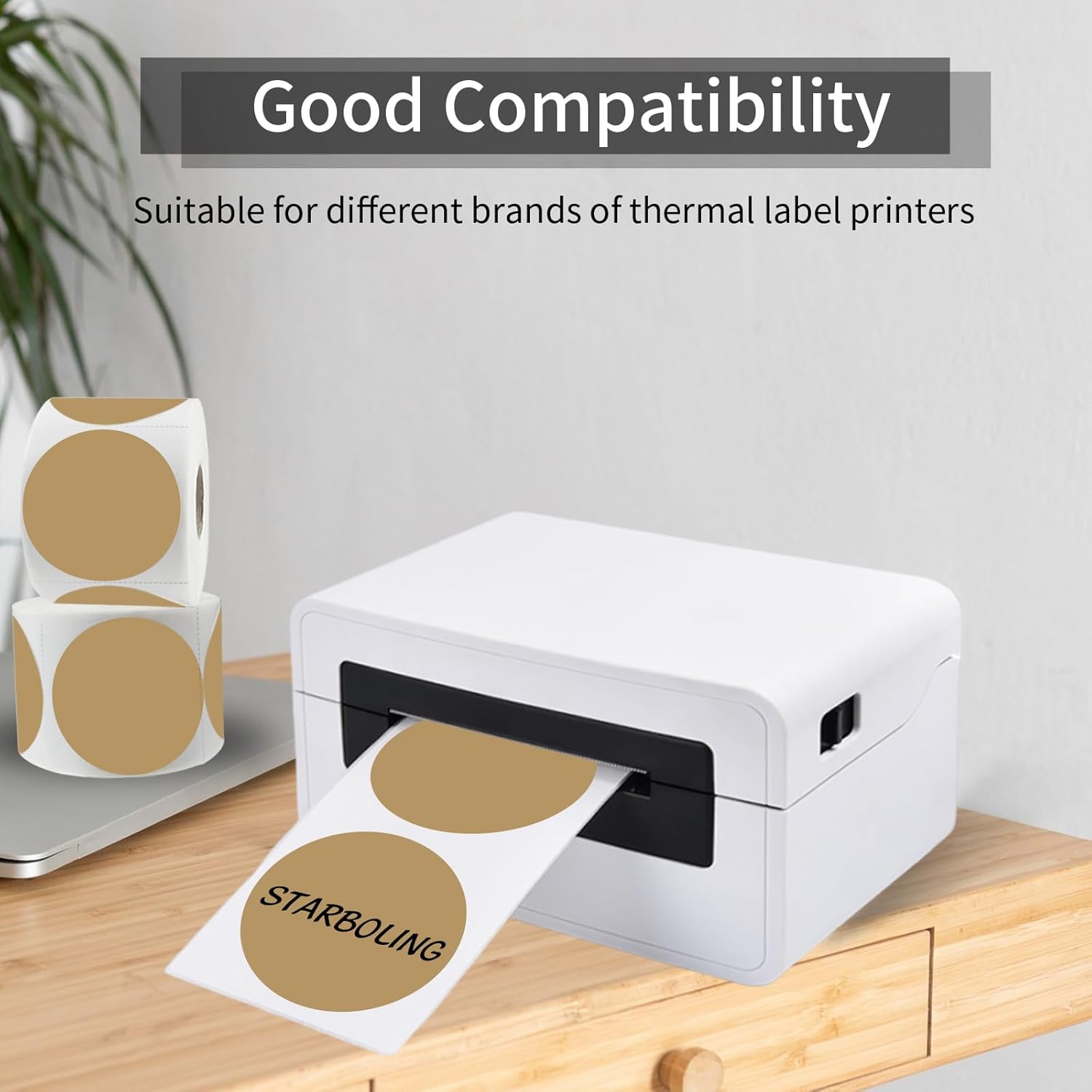 Thermal Labels,2 Inch Brown Round Thermal Printer Stickers,Self-Adhesive Round Direct Thermal Labels,Thermal Stickers for DIY Logo Design,Name Tag (500/Roll