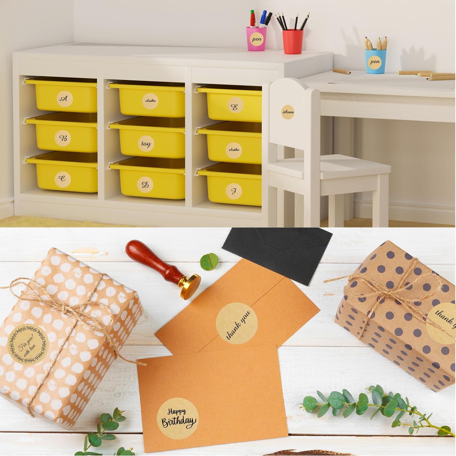 Thermal Labels,2 Inch Kraft Paper Color Round Thermal Printer Stickers,Self-Adhesive Round Direct Thermal Labels,Thermal Stickers for DIY Logo Design,Name Tag (500/Roll