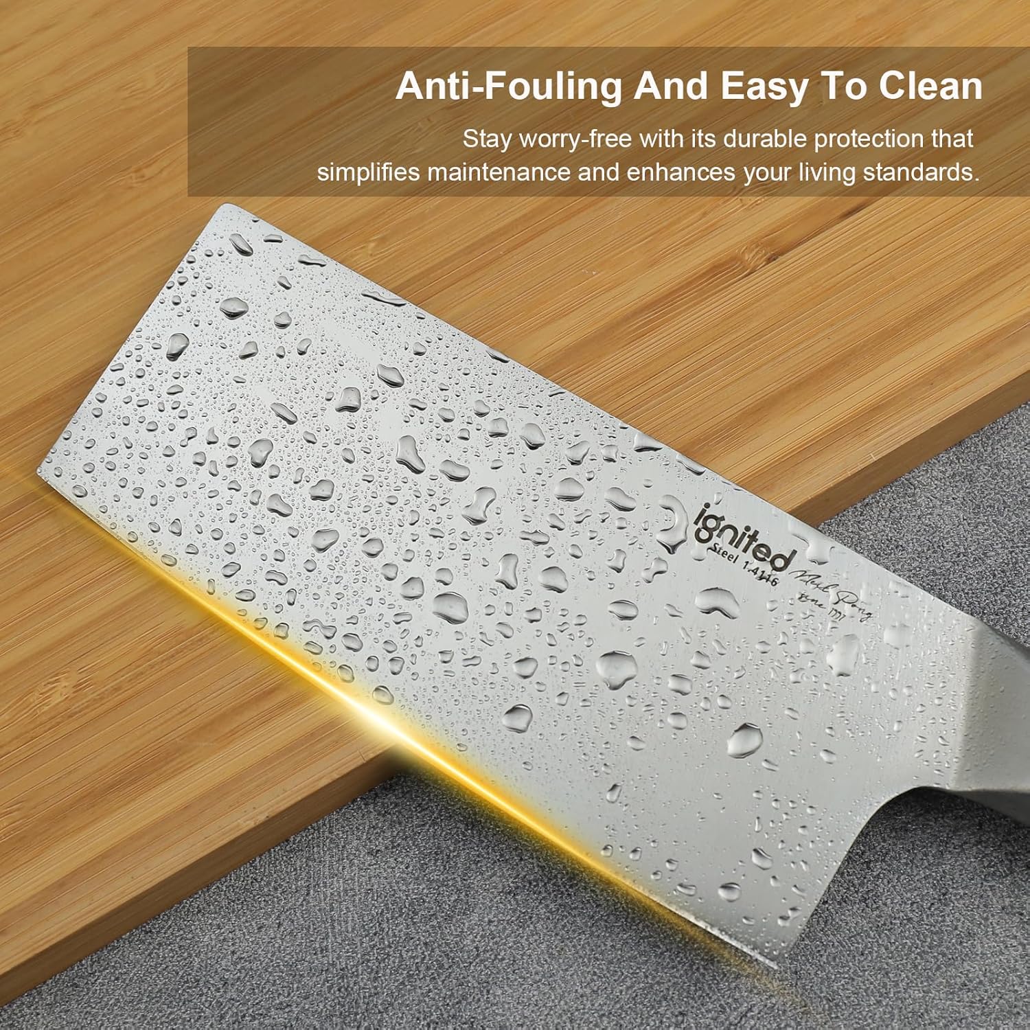- Premium German Steel: Made from advanced German 1.4116 high carbon stainless steel, this cleaver knife is harder, stronger, and more stable than traditional stainless and carbon steel, ensuring superior professional performance and easy maintenance.