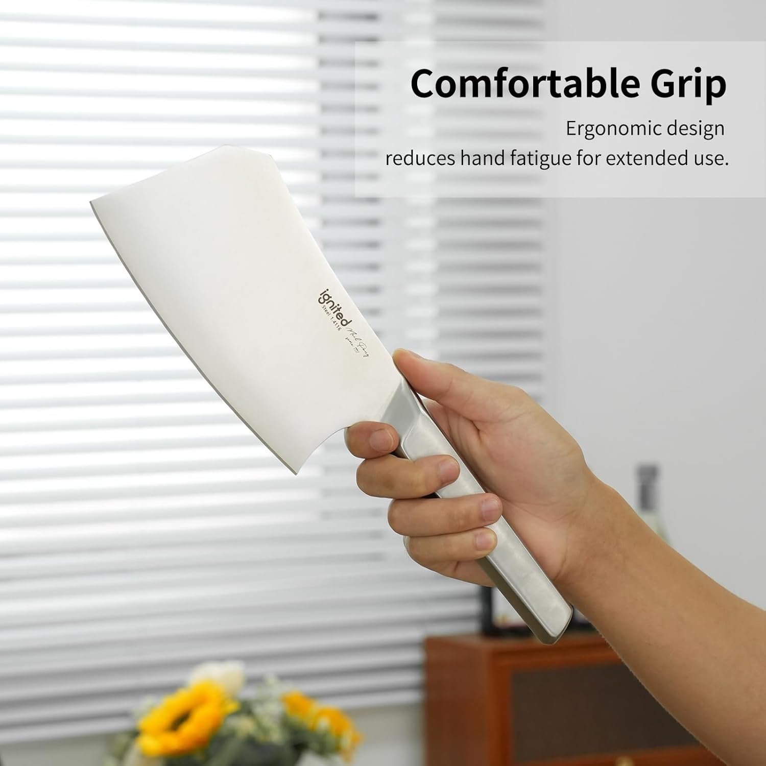 - Ergonomic and Comfortable Handle: The cleaver features a stainless steel handle that provides an easy grip and hassle-free maneuvering. The ergonomic design ensures superior comfort, and minimizes fatigue, making it ideal for extended use in busy kitchens.