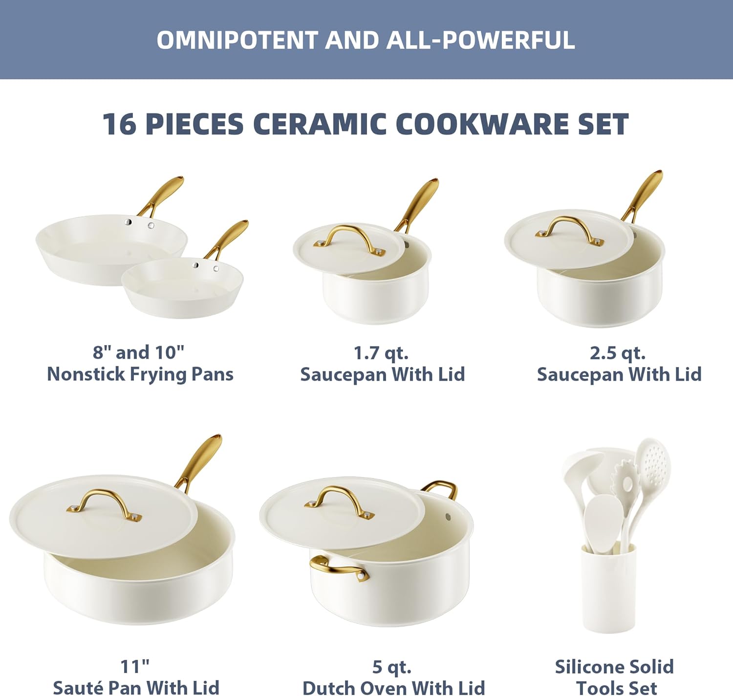 Pots and Pans Set Non Stick - VONIKI Ceramic Cookware Set with Cooking Utensils Set, Non Toxic Kitchen Cookware Sets Dutch Oven Pot with Lid Saucepan Set Sauté Pan Frying Pan Set for Cooking Gifts