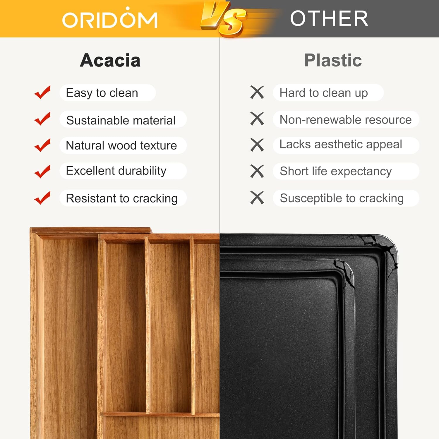 - 【Money -Back Warranty with Oridom】At Oridom, your happiness and satisfaction are at the heart of what we do. We're dedicated to delivering not just premium products, but also top-tier customer service: a full 1-year warranty, a no-questions-asked money-back guarantee, and round-the-clock customer assistance. We're here for you every step of the way, what you can get are high quality acacia utensil organizer for kitchen drawers and friendly customer service.