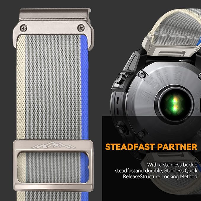 • 【Safe And Easy Installation】The stainless steel spring pins at the ends of the quick release band have been modified. with which you can easily change the replacement band for Garmin Fenix 5 Plus/Fenix 6 Pro/Fenix 7 Pro and attach the sports bracelet for Garmin Fenix 5 Plus band/Fenix 6 Pro band/Fenix 7 Pro band firmly and securely to the watch. Easy to install and remove without tools.