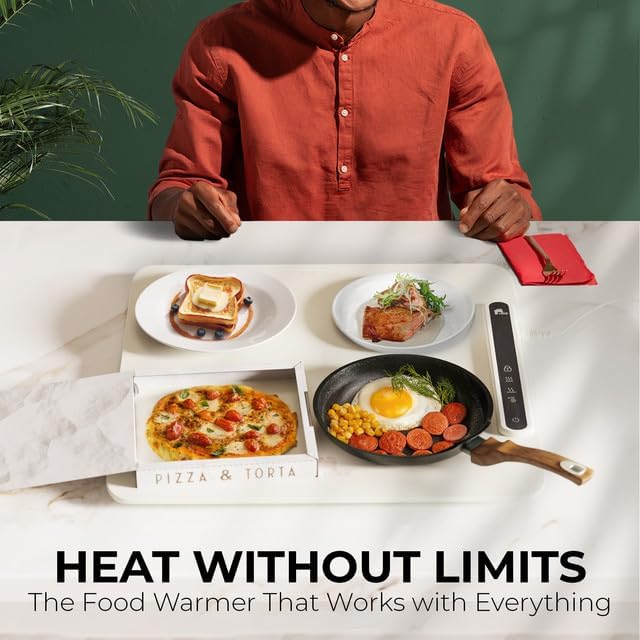 - Flat & Flexible Silicone - Unlike other electric food warmers, this unobtrusive table mat won't be in the way of your hands or elbows. Fireless food heaters may also be safer for households with kids.